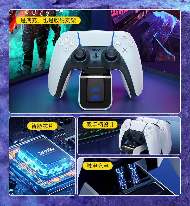 Jemdo is suitable for PS5 handle base charger, PlayStation5 dual handle charging base bracket slim charger accessories, Black Myth Wukong Monster Hunter Dual Shadow Wonderland