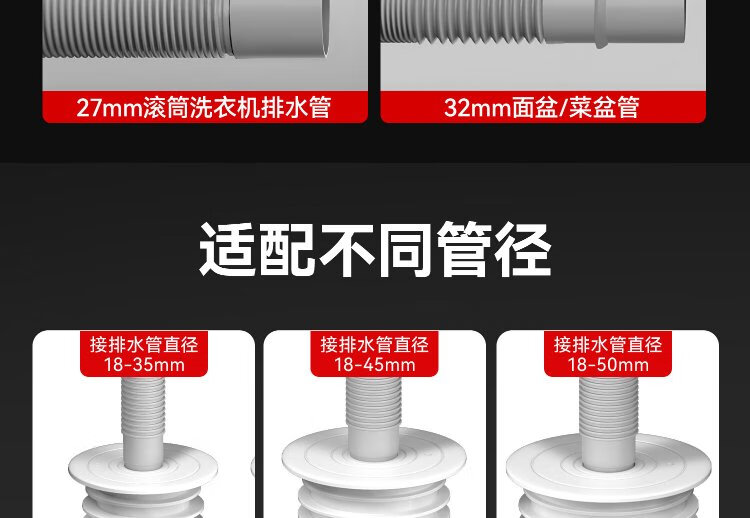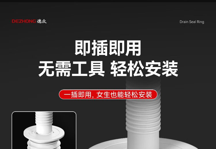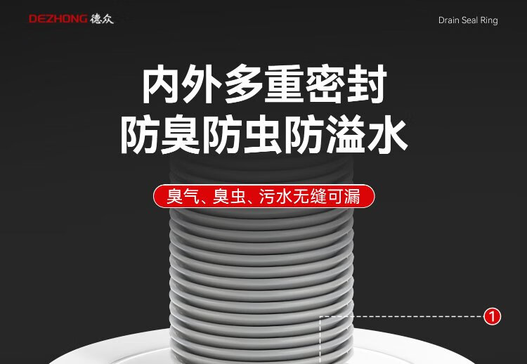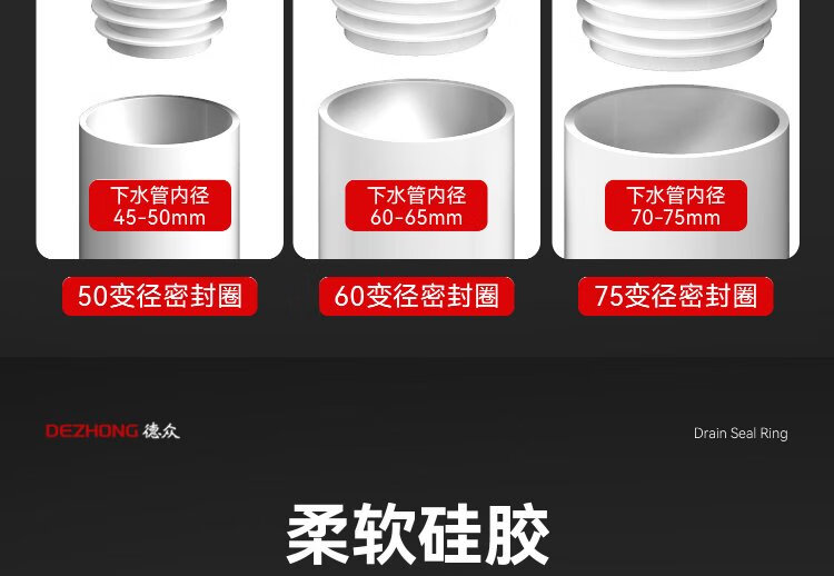 Dezhong sewer pipe anti-odor sealing plug sewer anti-return odor artifact anti-overflow silicone variable diameter seal ring 50 white