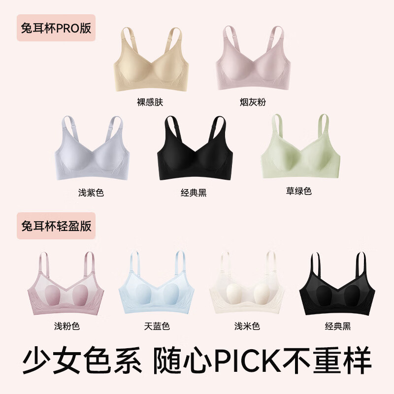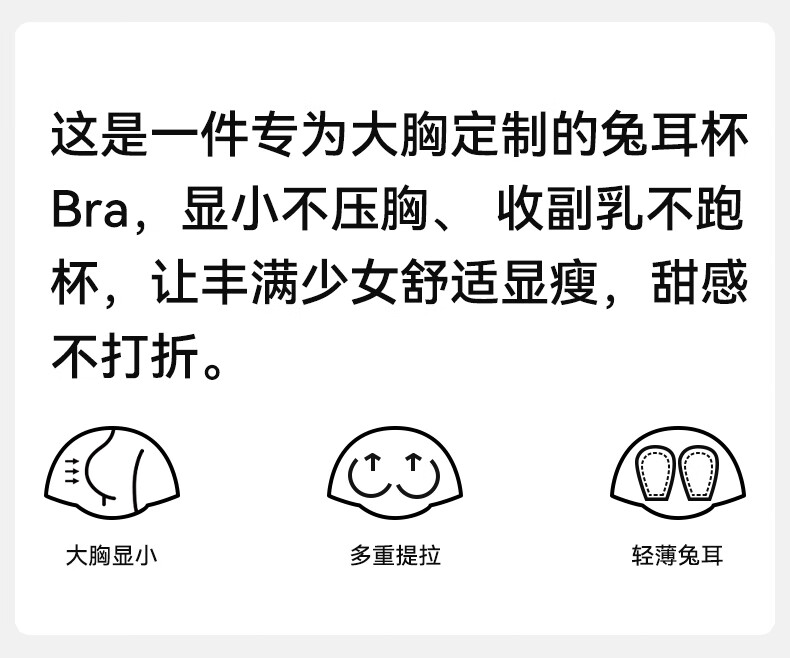 Gu Niangjia's big-breasted underwear, women's rabbit ear cup bra, large size, slimming, pull-up, support for accessory breasts, soft support to prevent sagging