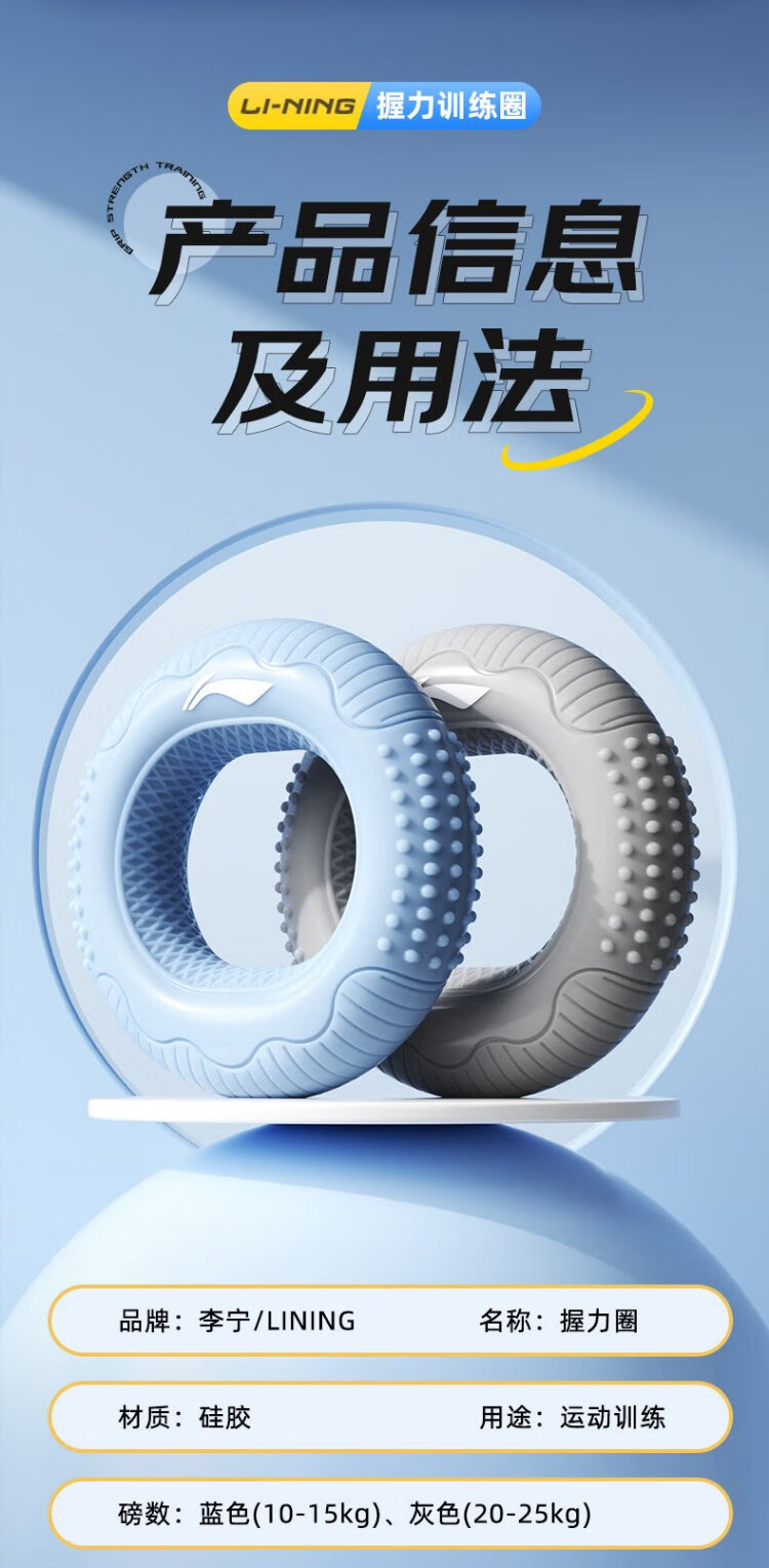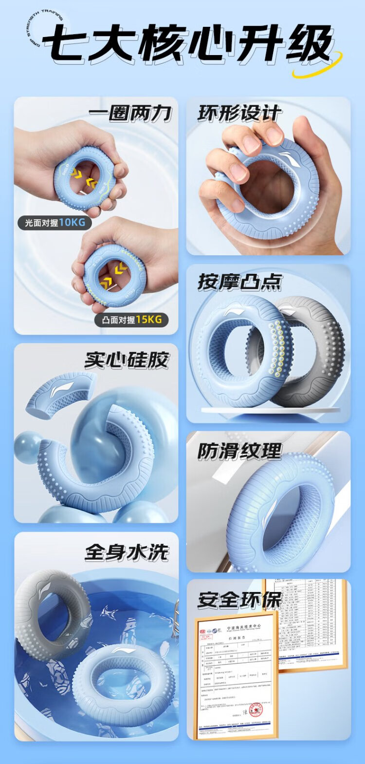 Li Ning (LI-NING) Grip Circle Finger Rehabilitation Training Hand Strength Men's and Women's Silicone Grip Strengthener Decompression Arm Strength Exerciser Convenient