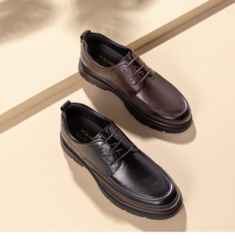 Aokang cowhide lace-up leather shoes men's British style formal business shoes men's black size 42