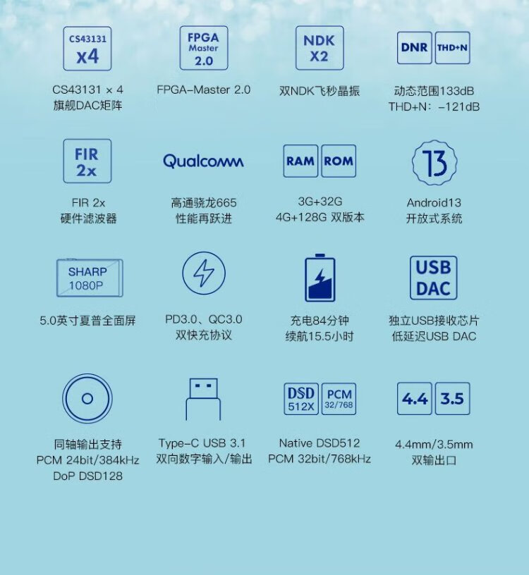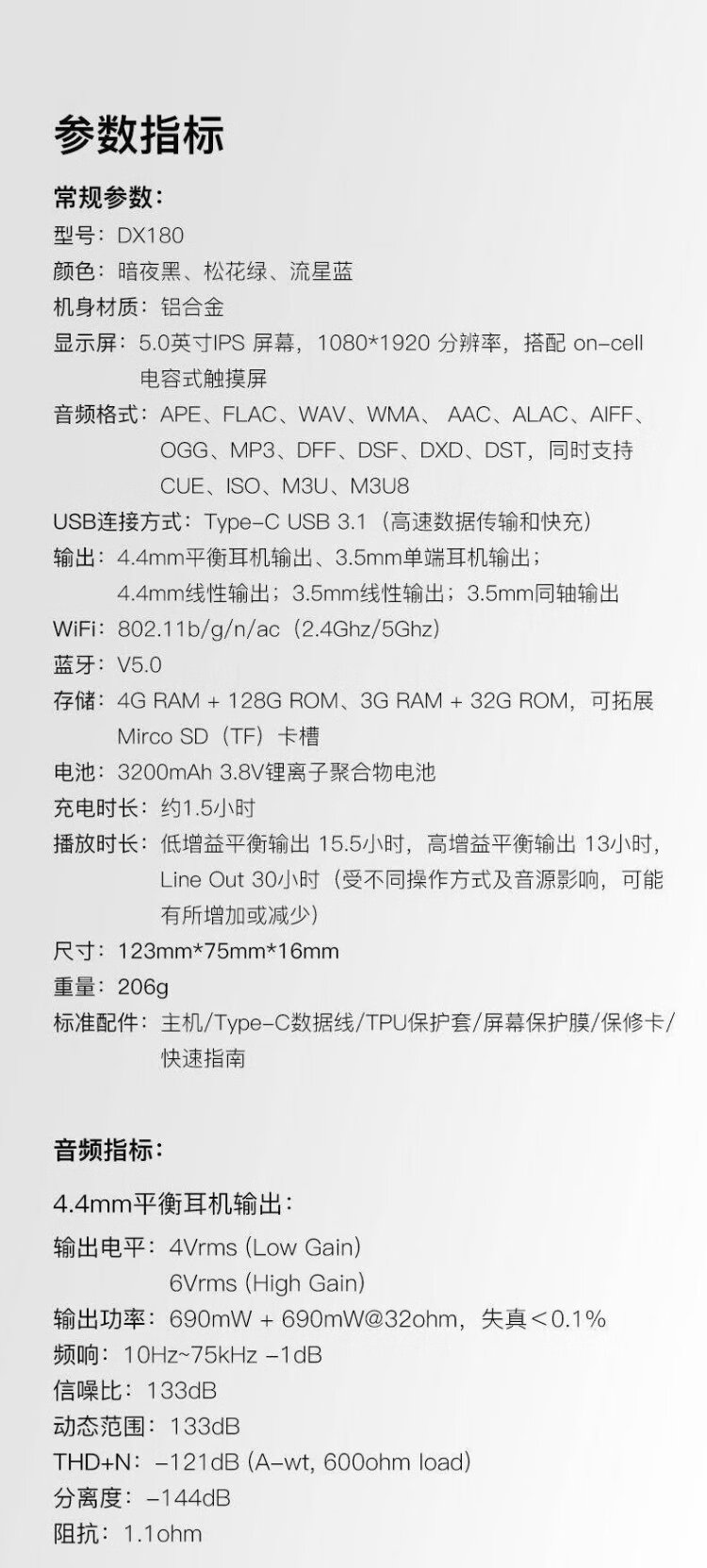 IBasso DX180 HIFI Android audiophile player decodes DSD hard decoding lossless music MP3 Dark Night Black (4G+128G)