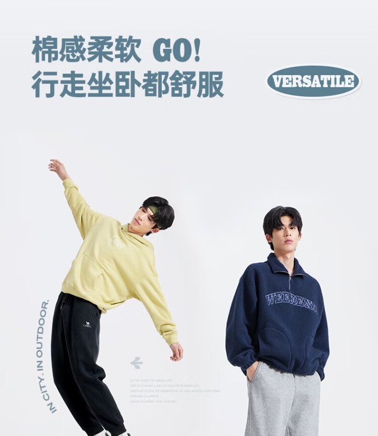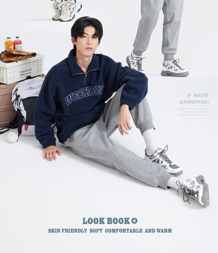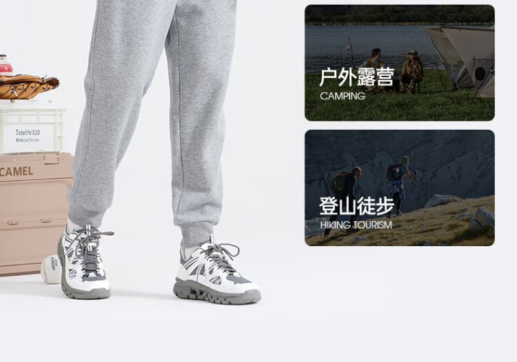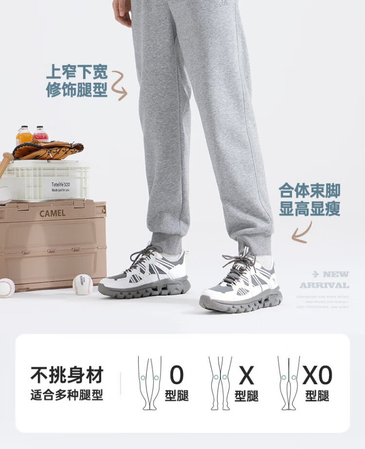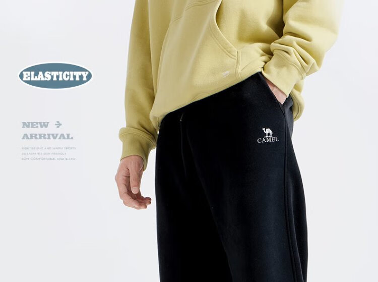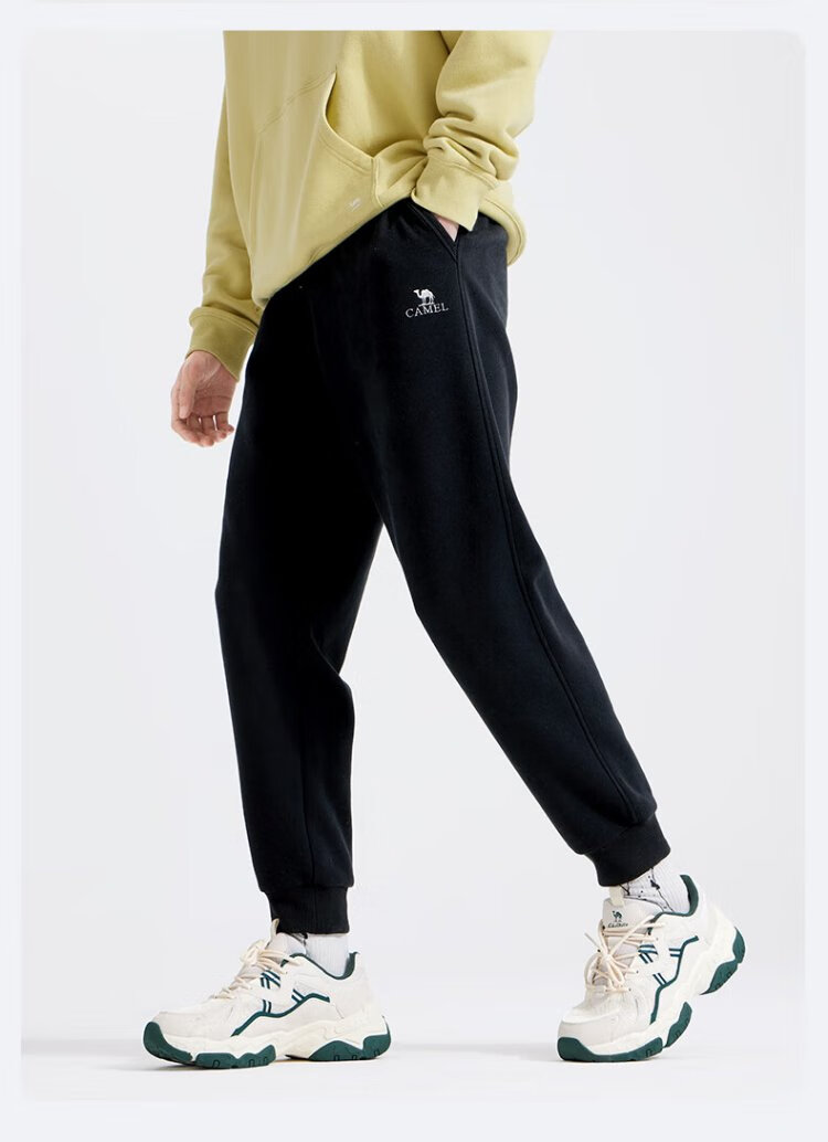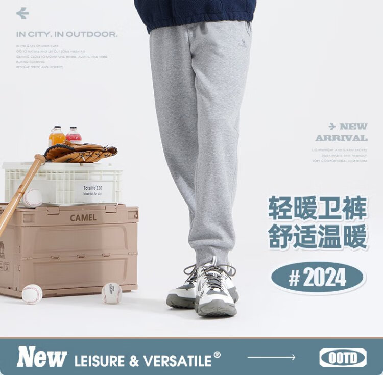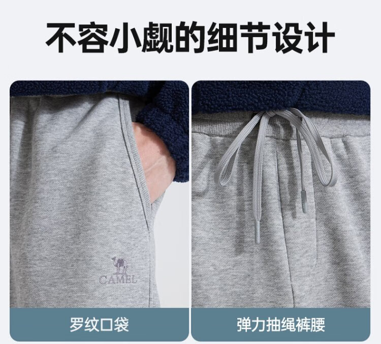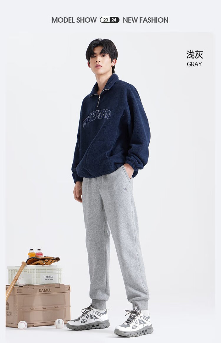 CAMEL Men's Gray Sweatpants Men's Autumn Knitted Cotton Feel Loose Casual Pants Tie-Leg Sweatpants M14CA5E629