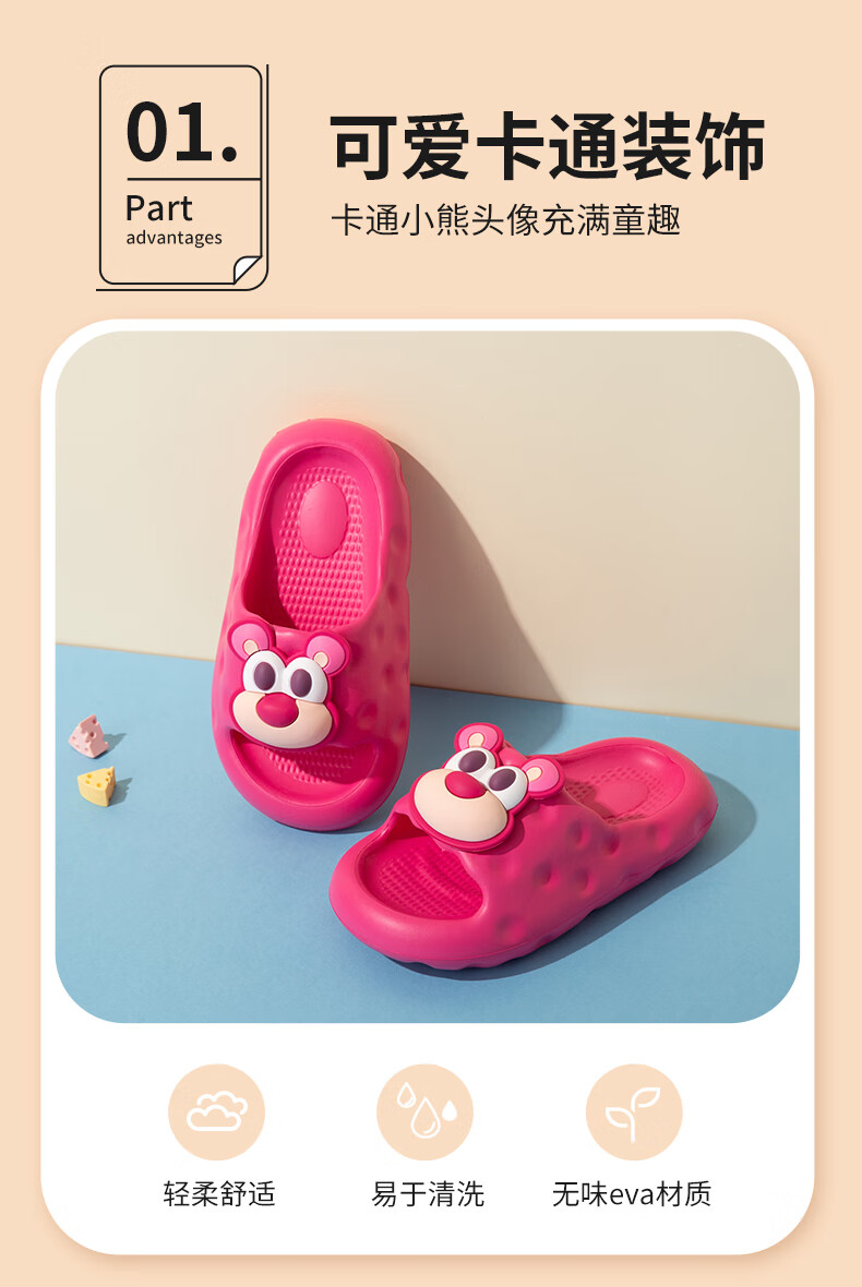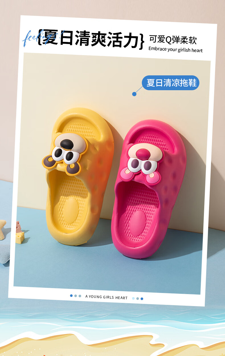 Fuluomi Girls Cartoon Slippers Summer Home Bath Non-Slip Children's Lightweight Soft Soled Sandals Rose Red 36