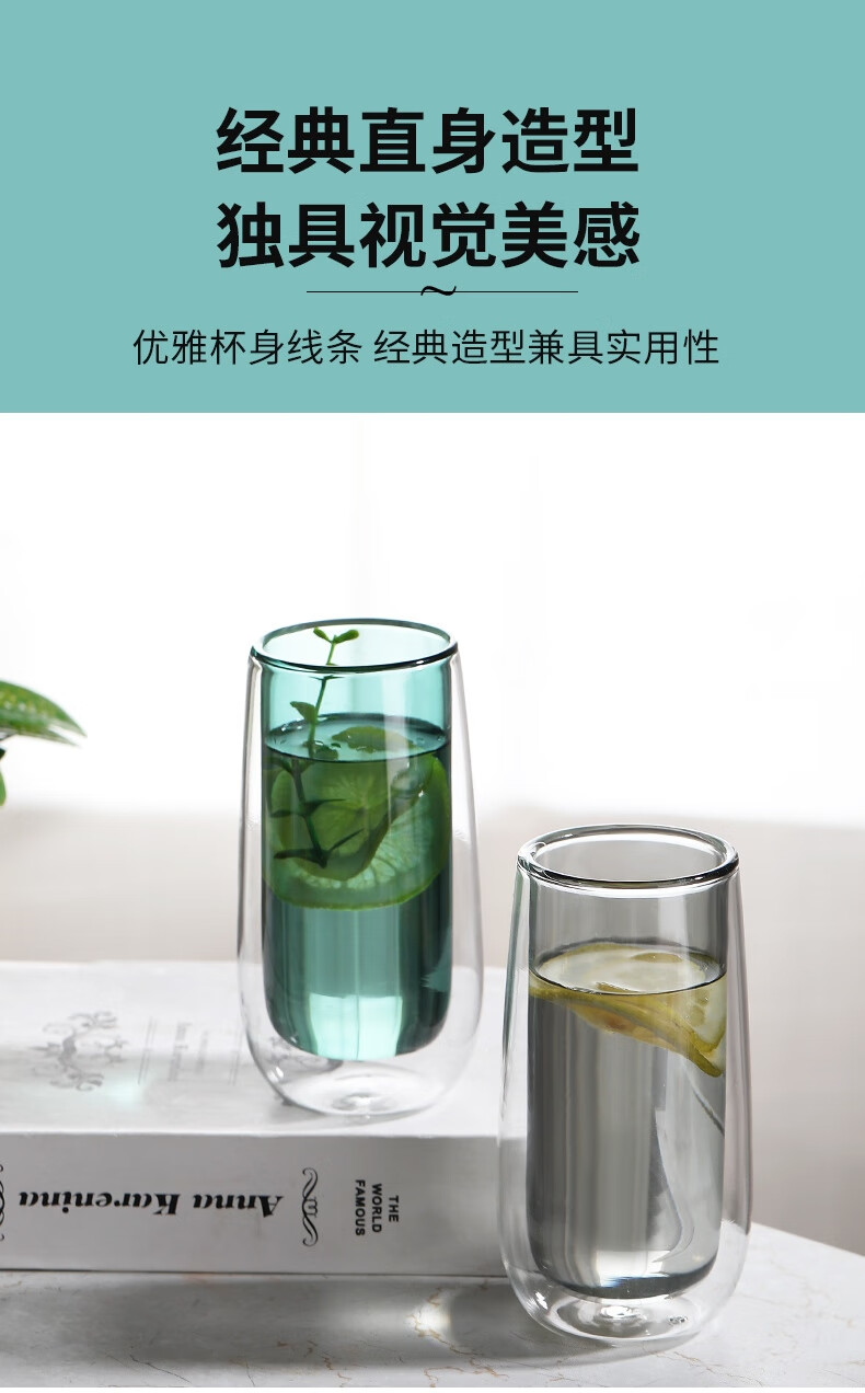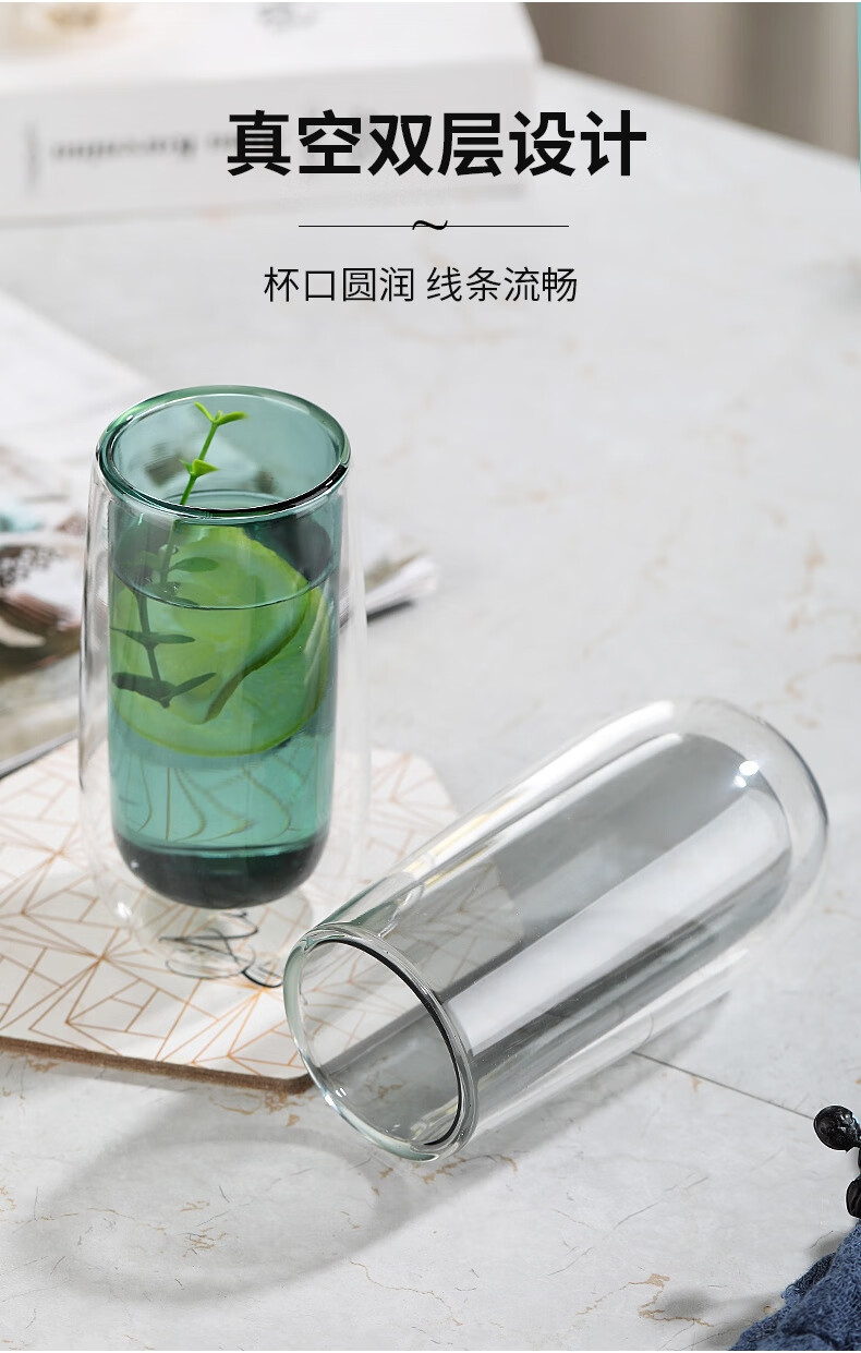 MULTIPOTENT heat-resistant glass water cup double-layer glass cup rose same style cup milk cup smoke gray 250ml