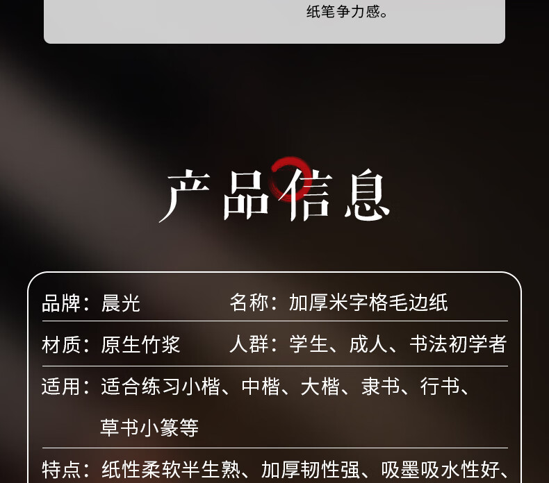 Chenguang (M&G) stationery brush calligraphy paper raw edge paper rice grid rice paper calligraphy practice paper for beginners to practice calligraphy 10cm*12 grid 100 sheets/package birthday gift APY9070L
