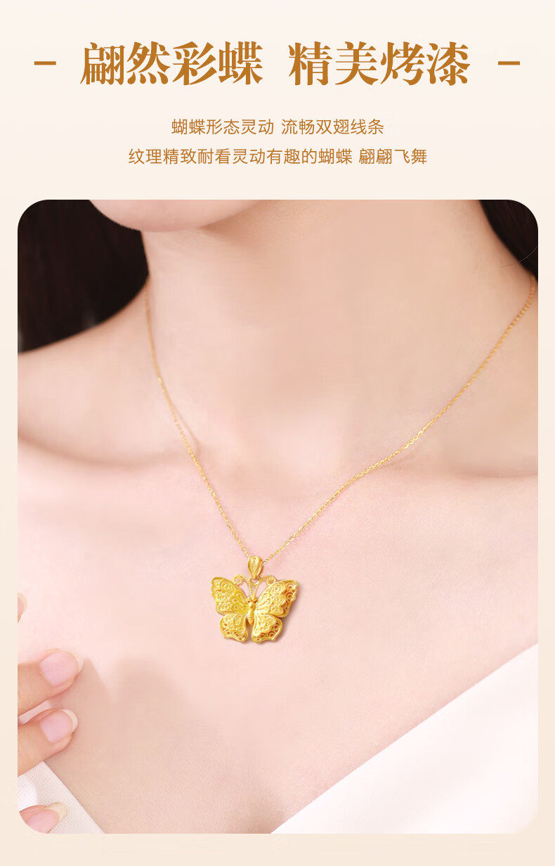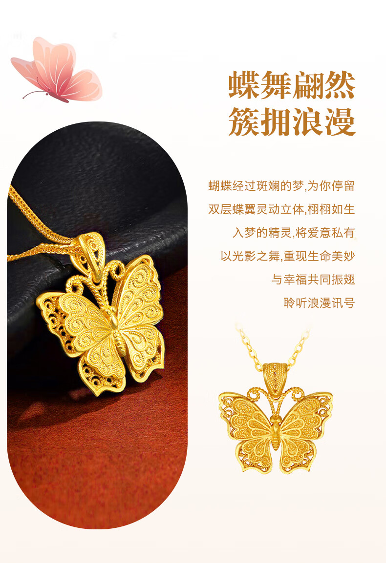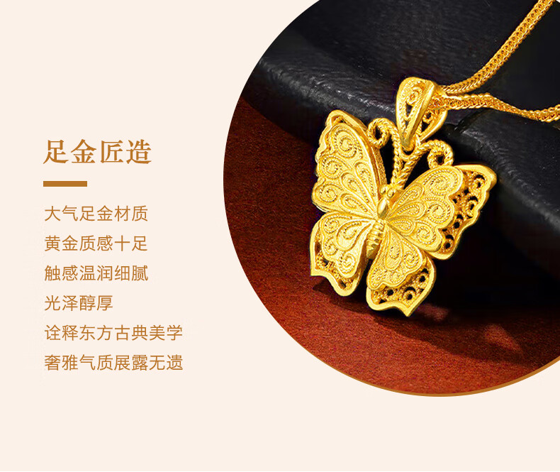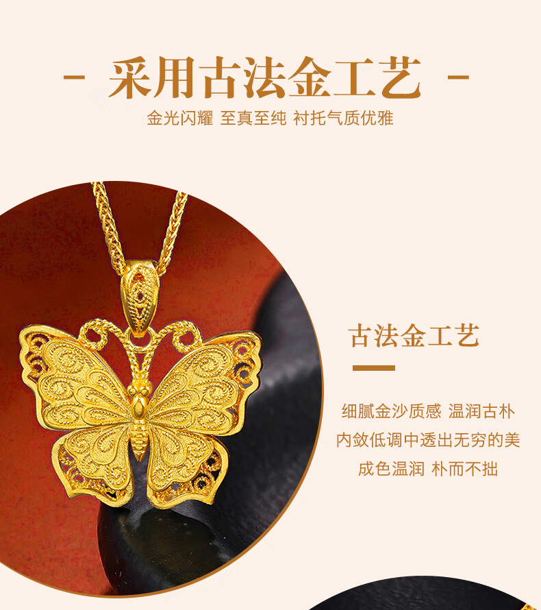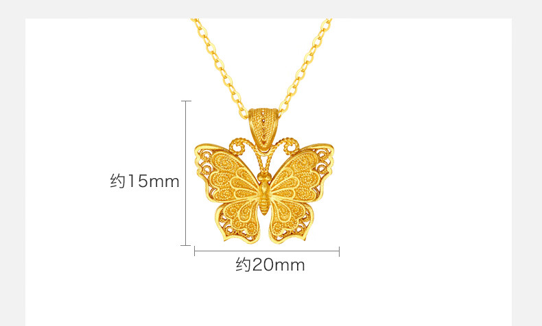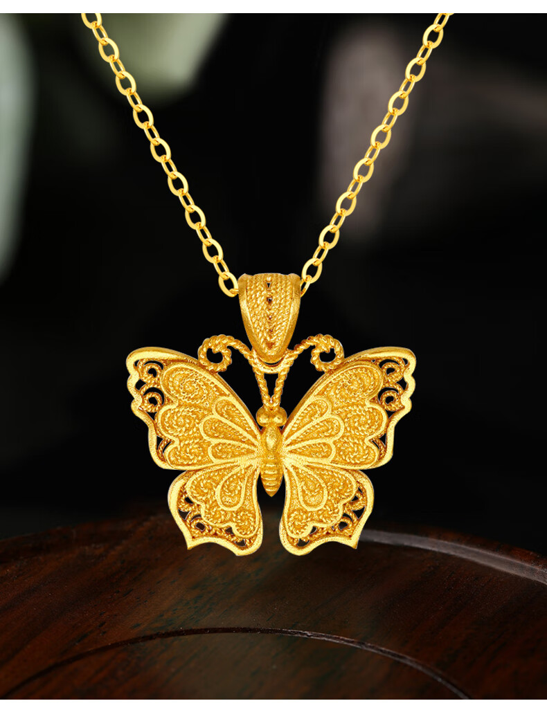 Tico ancient gold pure gold 999 filigree butterfly gold pendant hollow butterfly necklace pendant girlfriend birthday gift