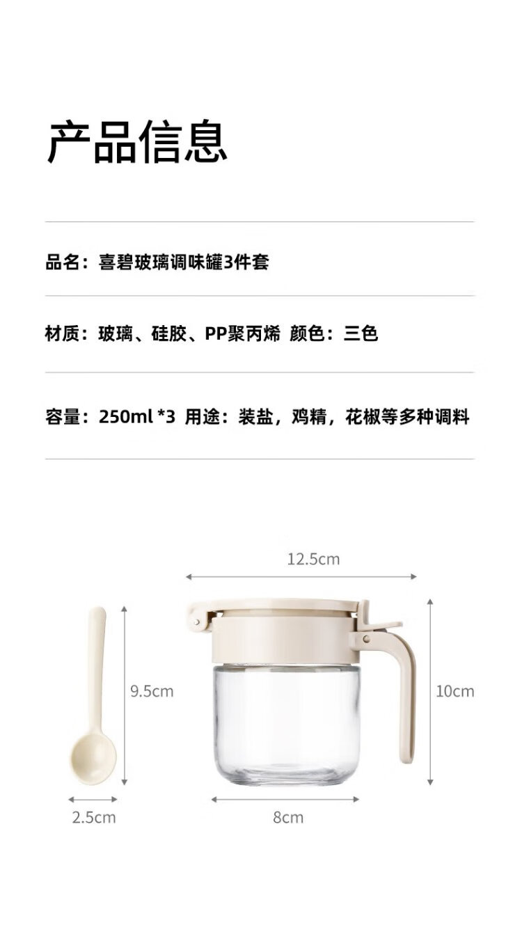 Scybe glass seasoning jar sealed moisture-proof seasoning box kitchen seasoning jar household seasoning bottle Laida 3-piece set