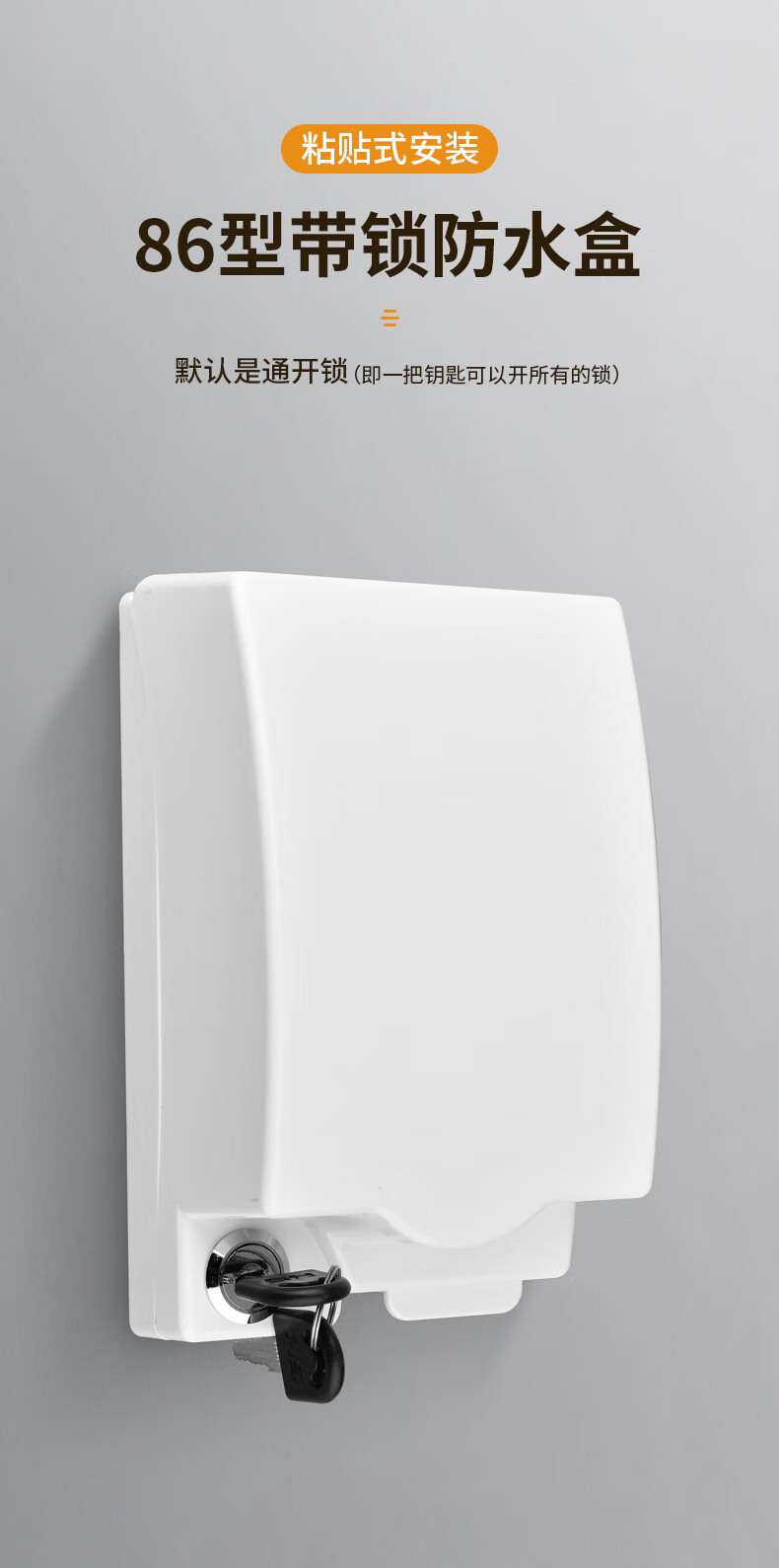 International Electrician Type 86 Heightened Locked Waterproof Box Fully Enclosed Built-in Lock Anti-Theft Electric Switch Socket Waterproof Cover Bathroom Protective Cover White-Heightened Model