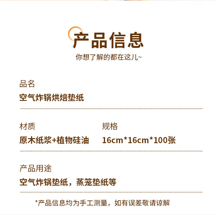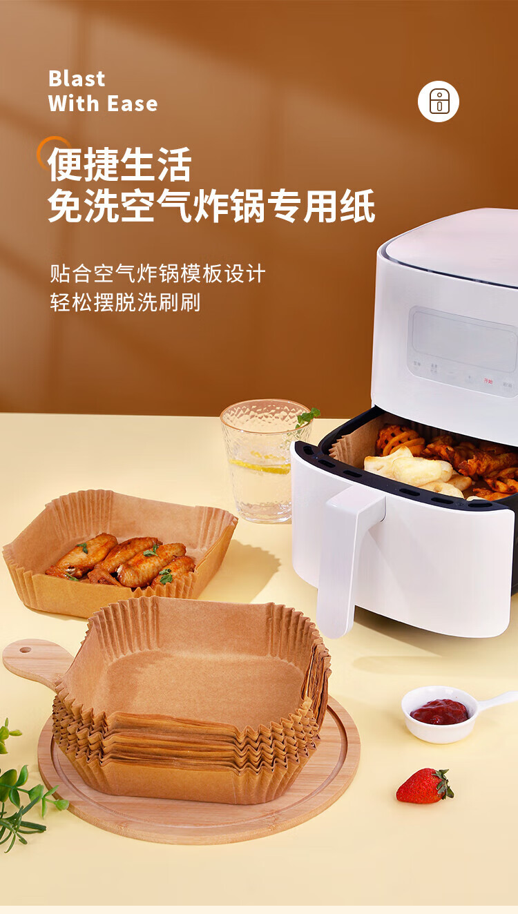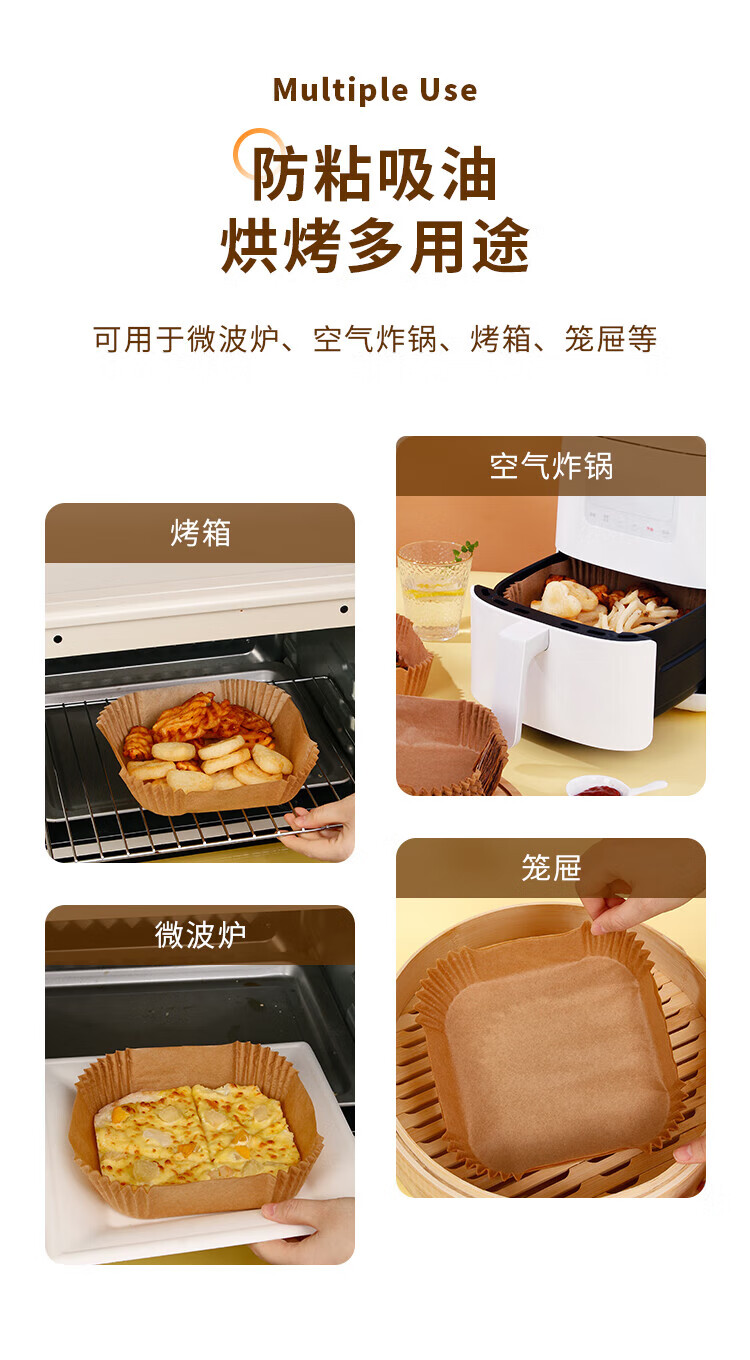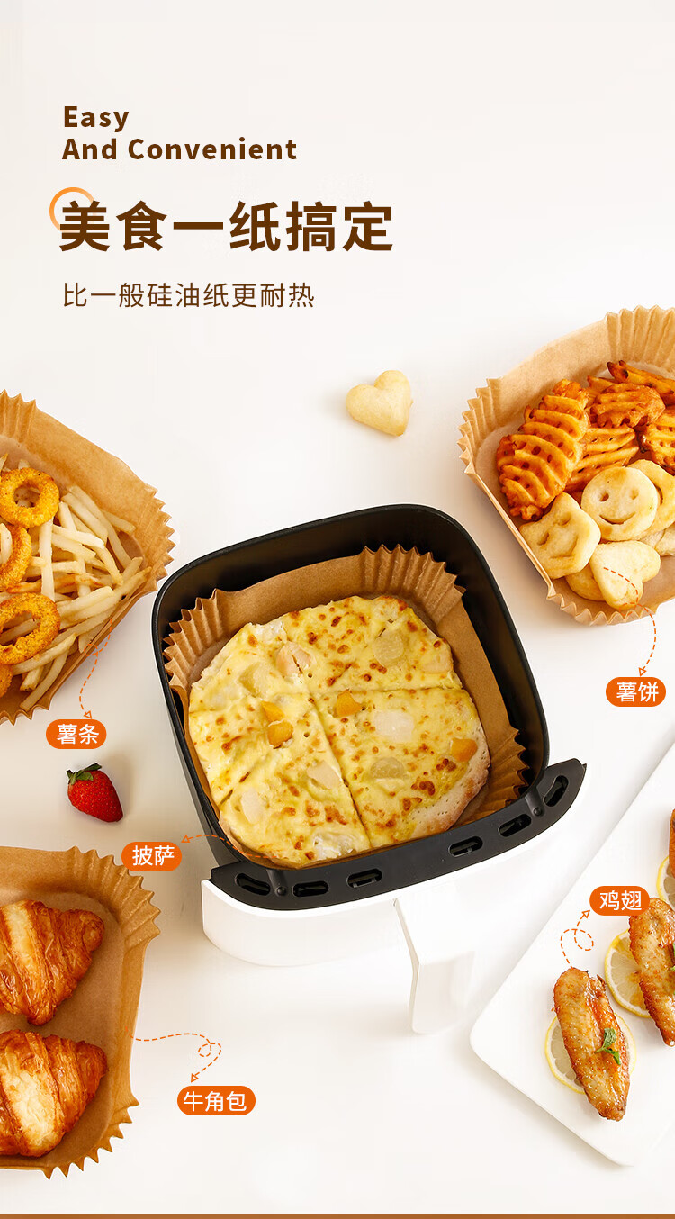 SHUANG YU air fryer special paper square 100 disposable silicone oil paper plates oil-proof non-stick pan suitable for 3L or more
