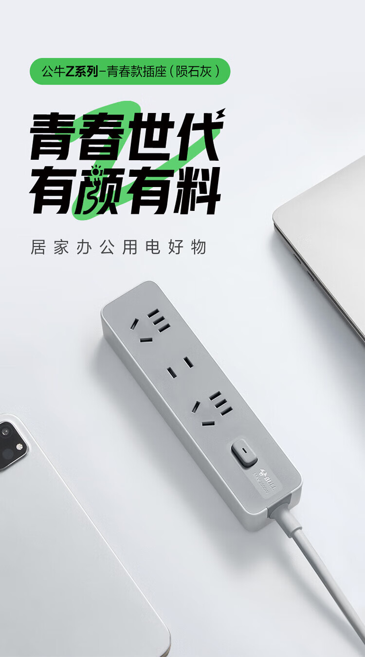BULL socket/socket board/socket strip/socket strip/terminal board/pull line board Generation Z 3-position master control switch with a total length of 3 meters GN-Z1121J