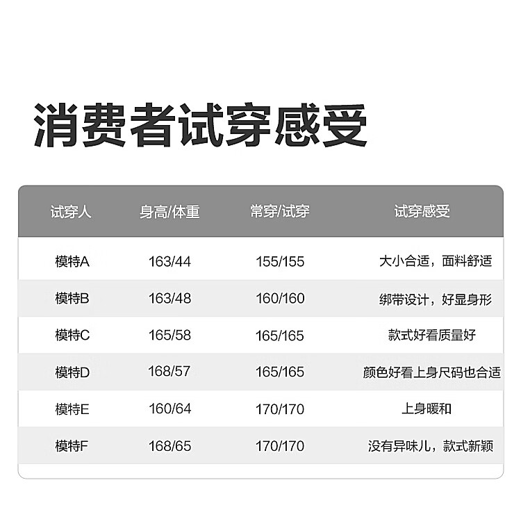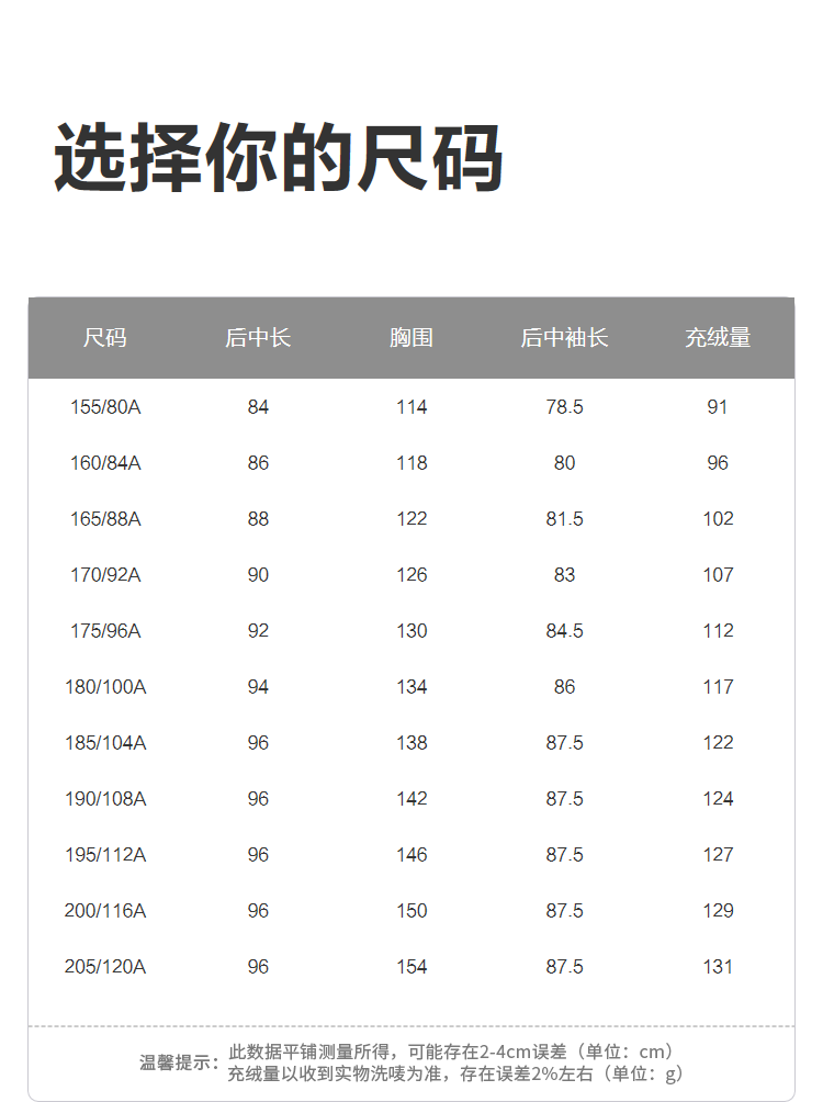 China (cm) 160-165/84-86 165-170 / 88-90 167-172 / 92-96 168-173 / 98-102 170-176 / 106-110