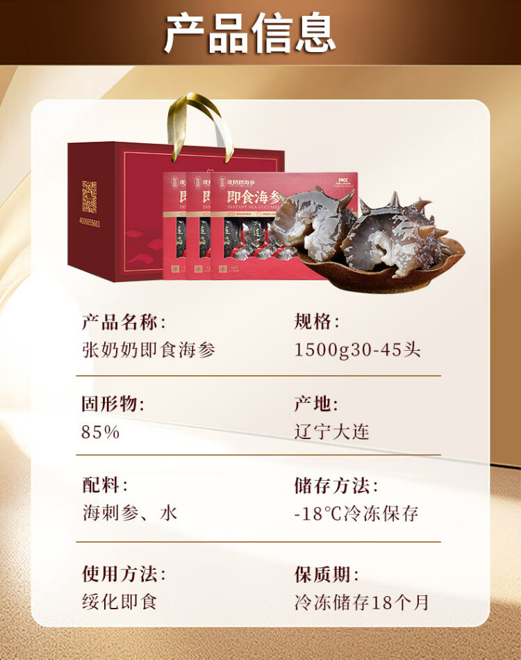 Grandma Zhang's ready-to-eat sea cucumber 3Jin Jin is equal to 0.5kg, 30-45 pieces, solid content exceeds 85%, high quality, pollution-free, seafood and aquatic products, gift box style
