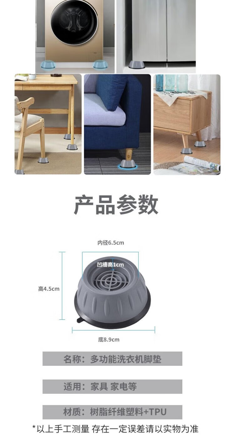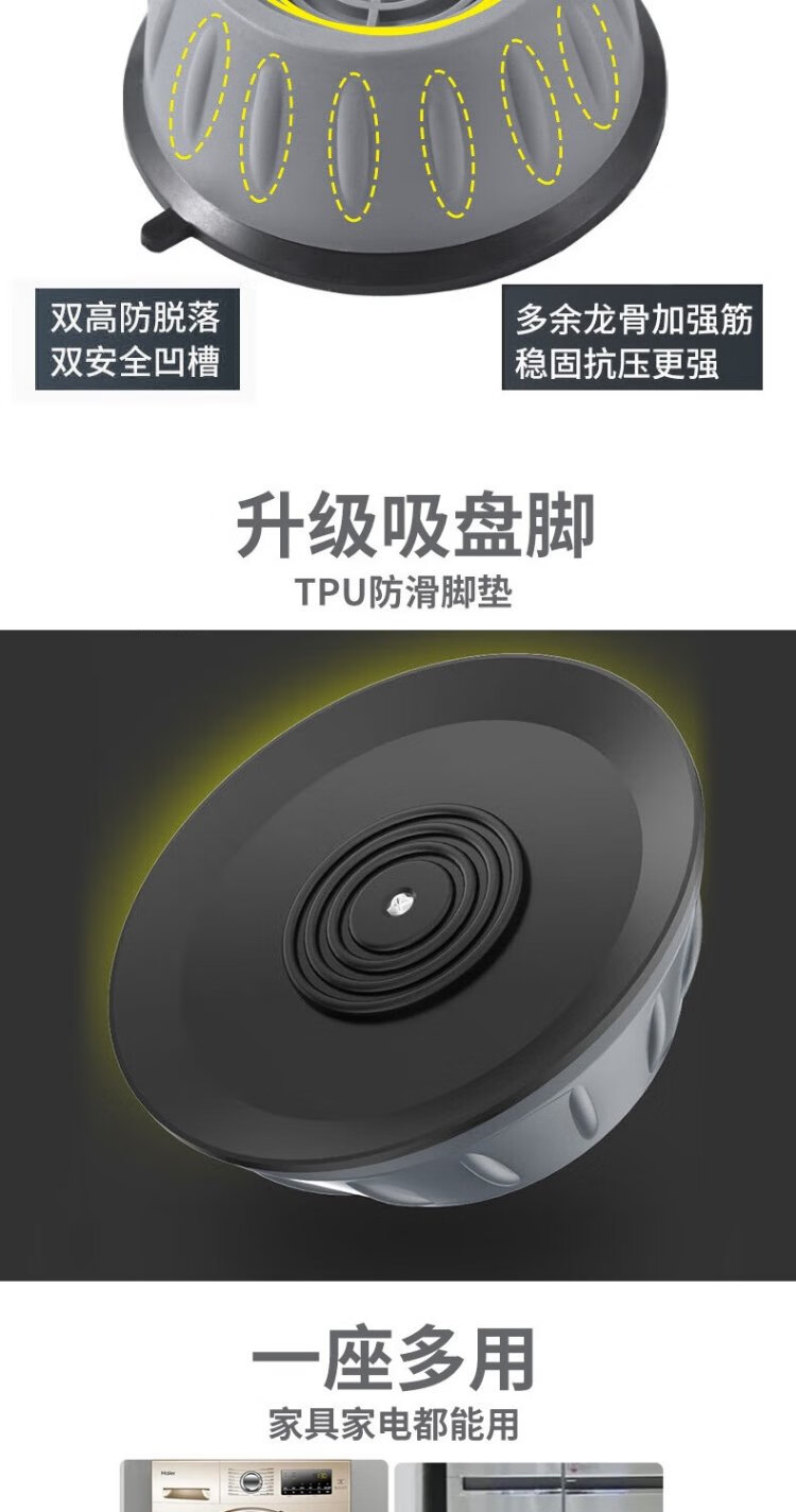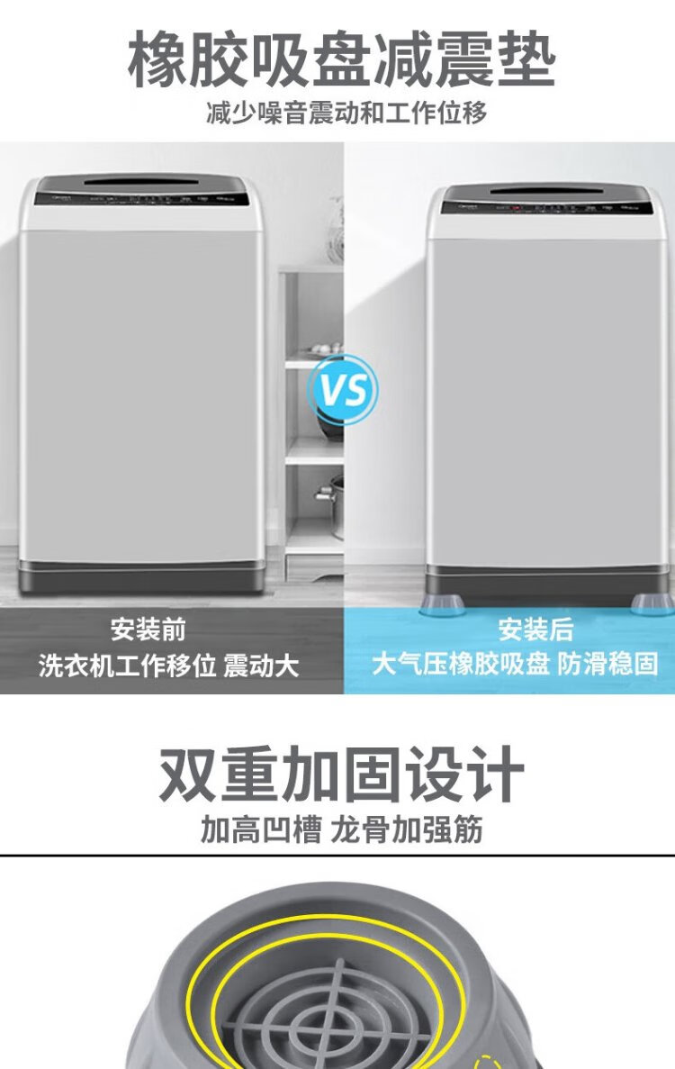 Bingyou washing machine foot pads 4 pack universal base anti-shock suction cup anti-slip increased foot pad shock absorption and noise reduction bracket