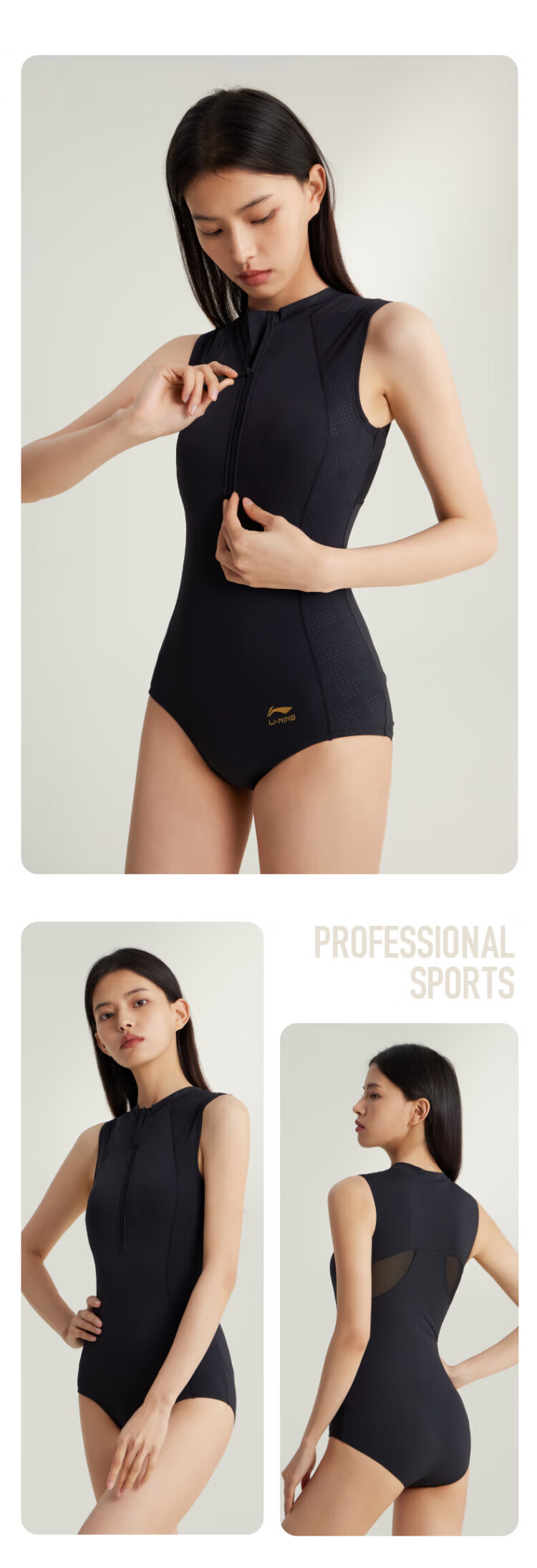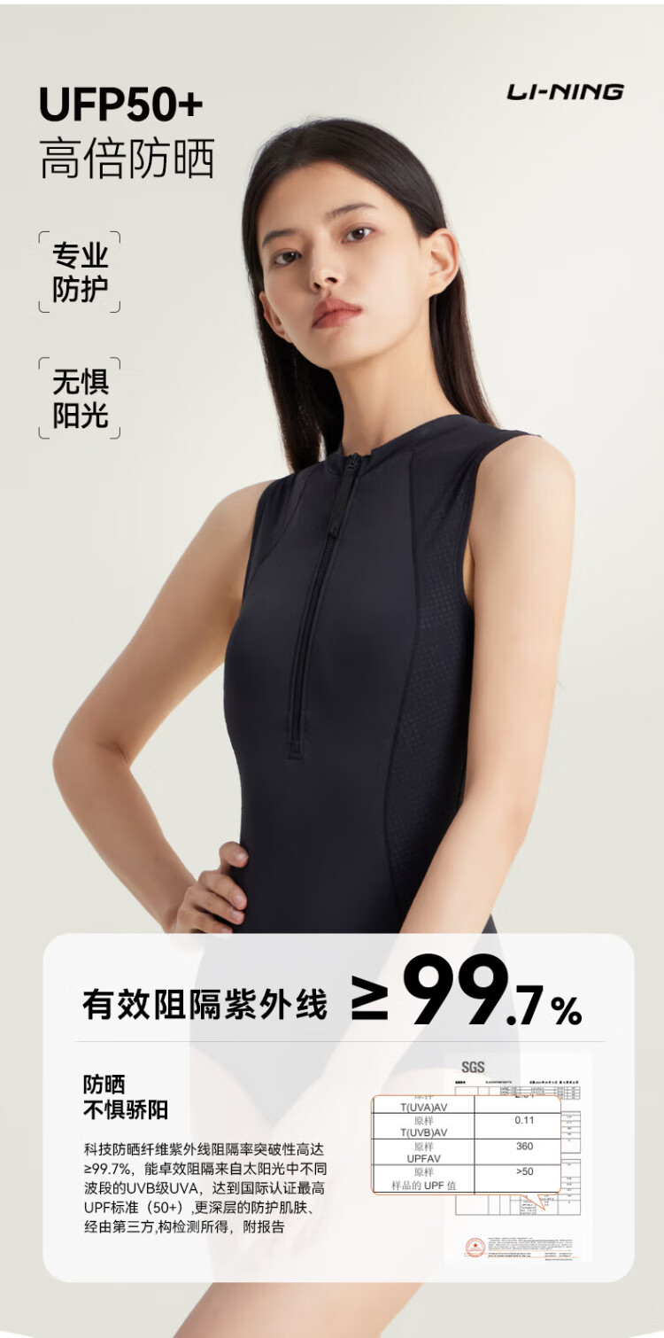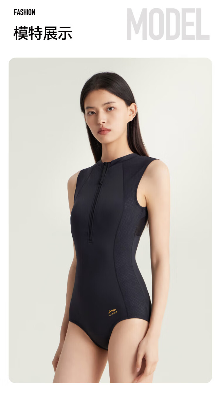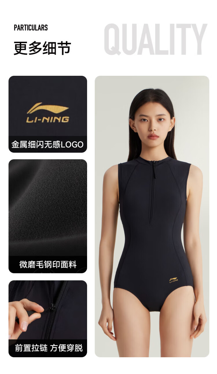 Li Ning (LI-NING) swimsuit women's one-piece triangle professional training swimsuit quick-drying sun protection racing swimming equipment 0951 black XL