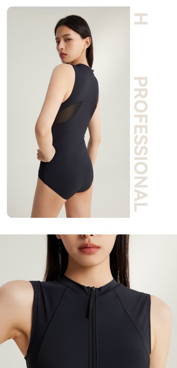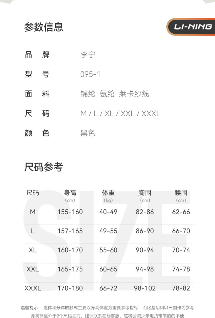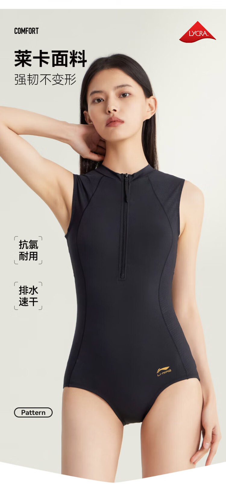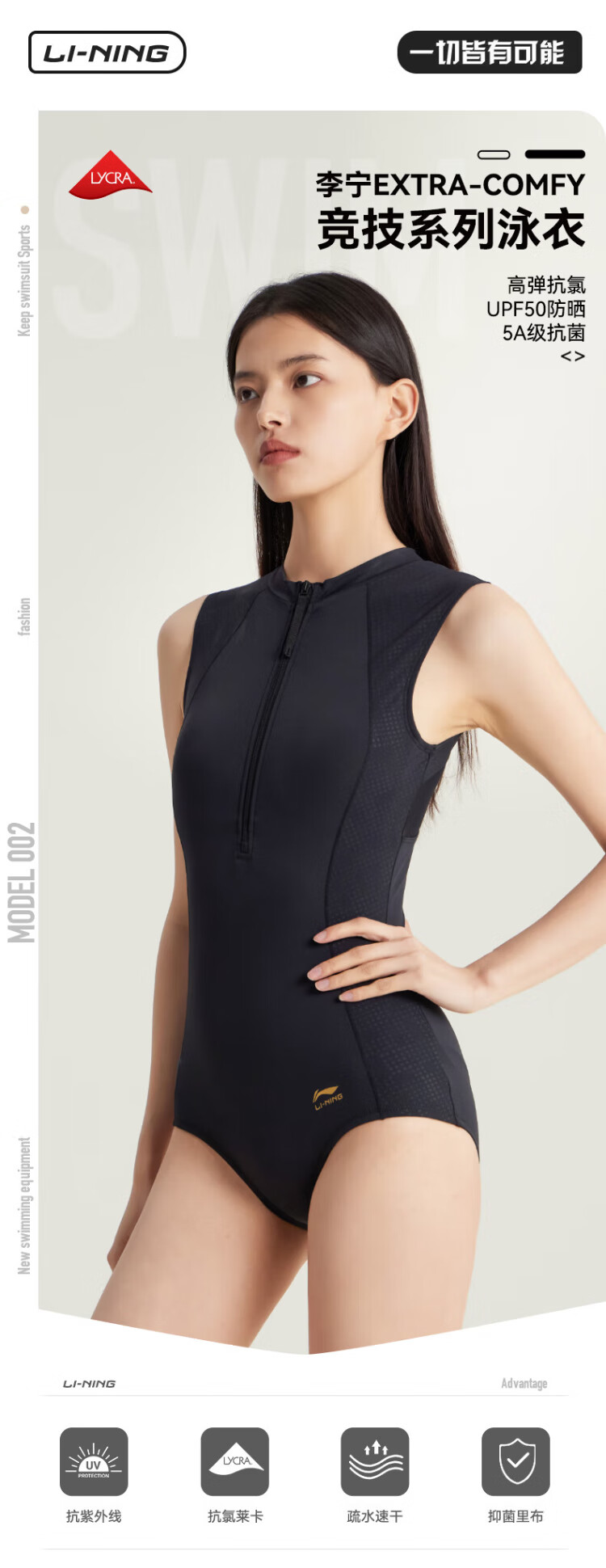 Li Ning (LI-NING) swimsuit women's one-piece triangle professional training swimsuit quick-drying sun protection racing swimming equipment 0951 black XL