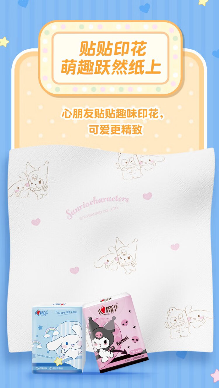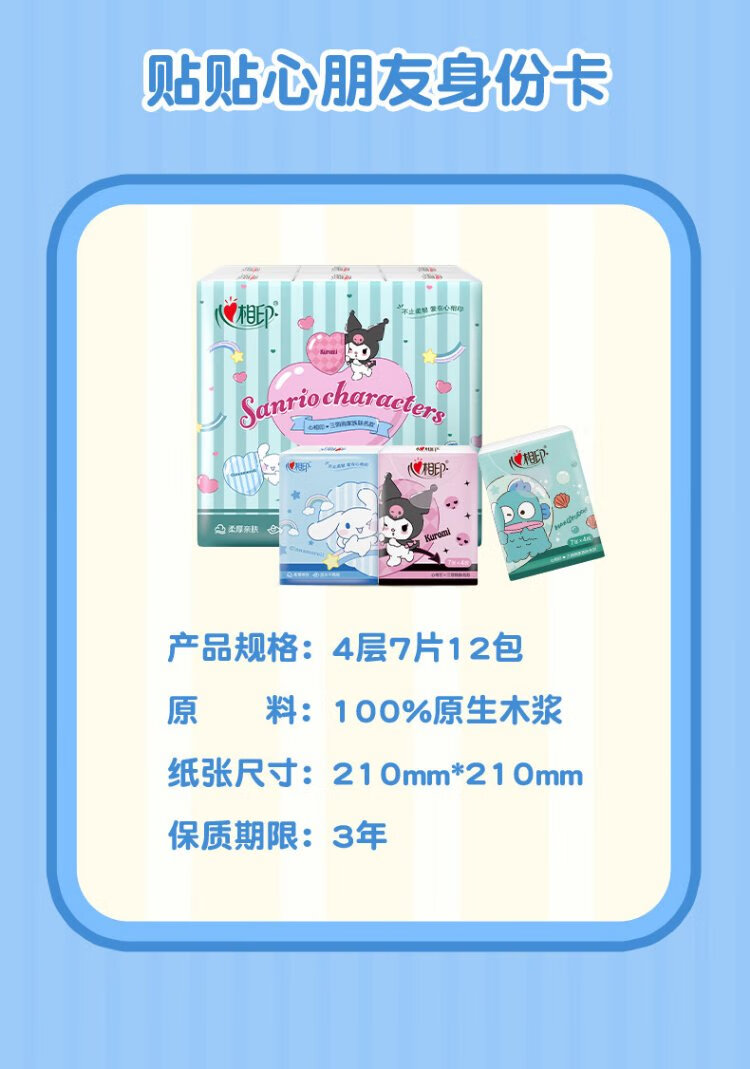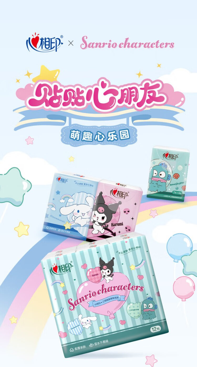 Heart to Heart Sanrio co-branded handkerchief paper 4 layers 7 sheets * 12 pack