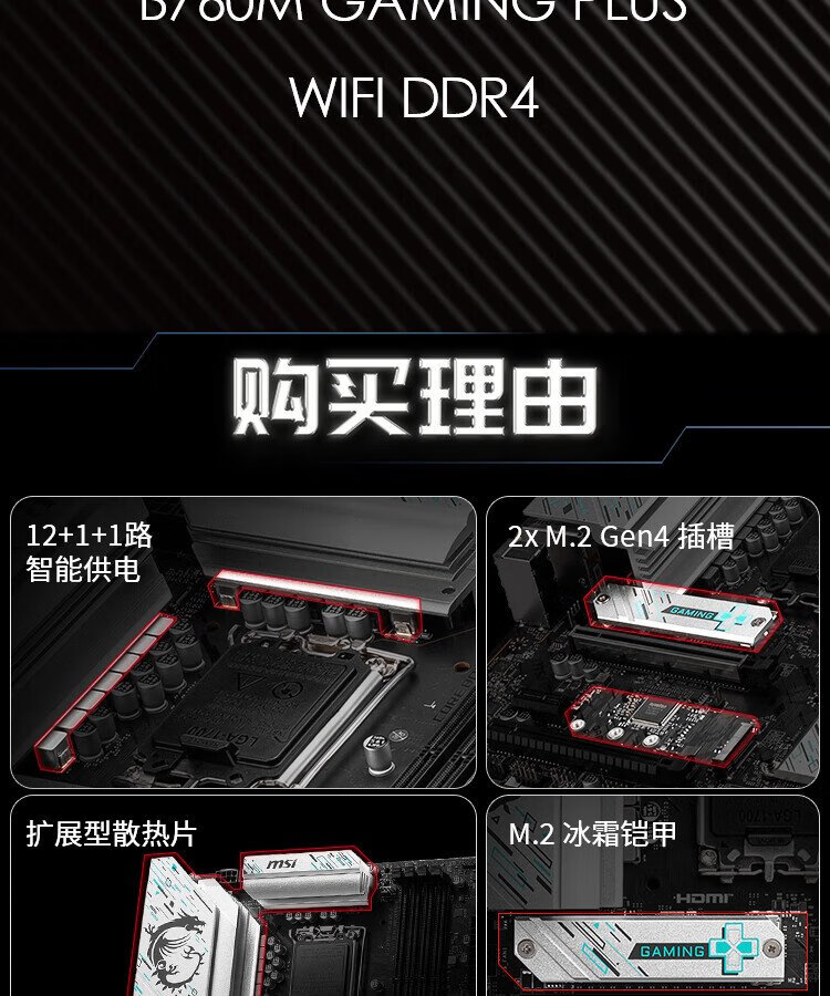 MSI B760M GAMING PLUS WIFI DDR4 computer motherboard supports CPU 14700KF/14600KF/12600KF (Intel B760/LGA 1700)