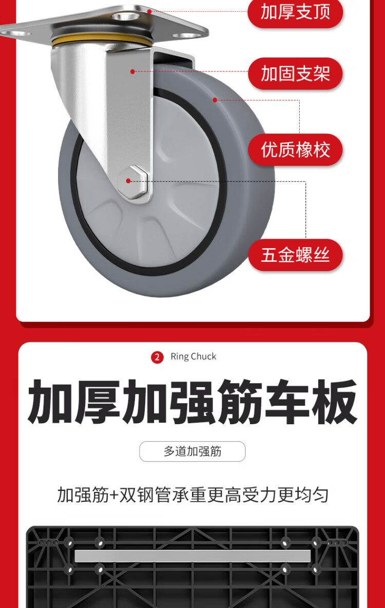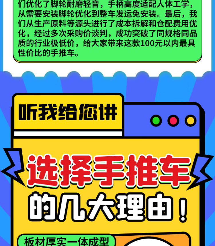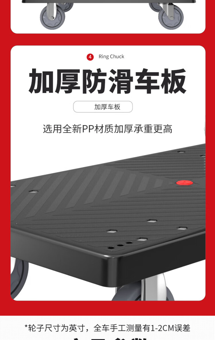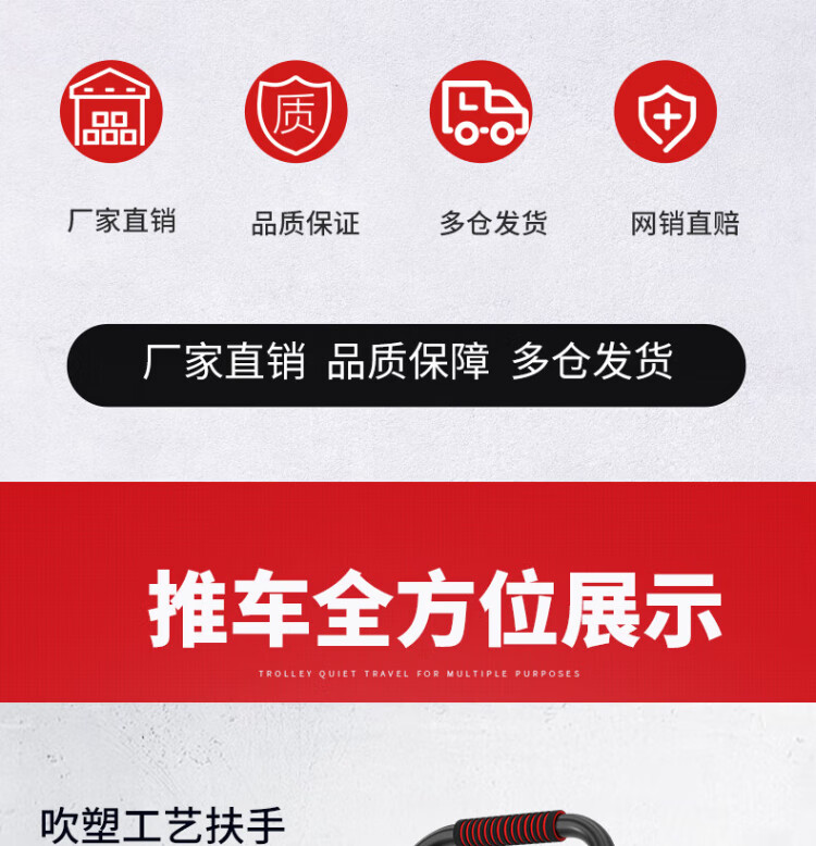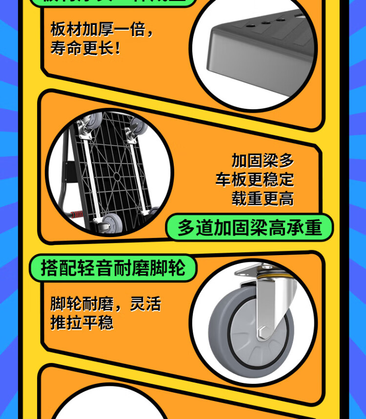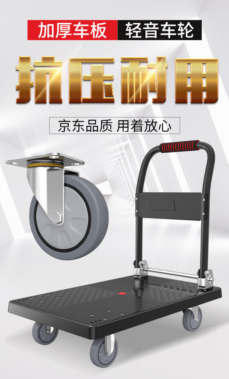 Haojiaju folding flat trolley, double steel tube load capacity 900Jin Jin is equal to 0.5kg, 90*60cm5 inch light tone wheel, hand push cargo handling small trailer decoration factory