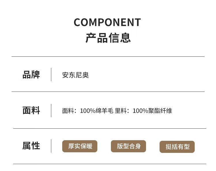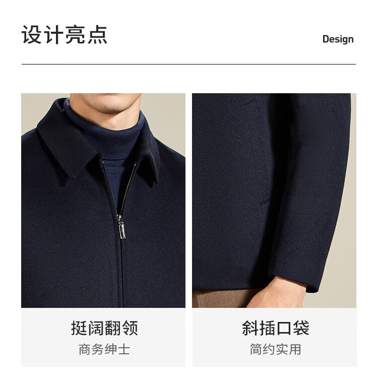 Antonio 100% sheep wool crisp lapel short jacket for men with diagonal pockets autumn and winter business woolen coat