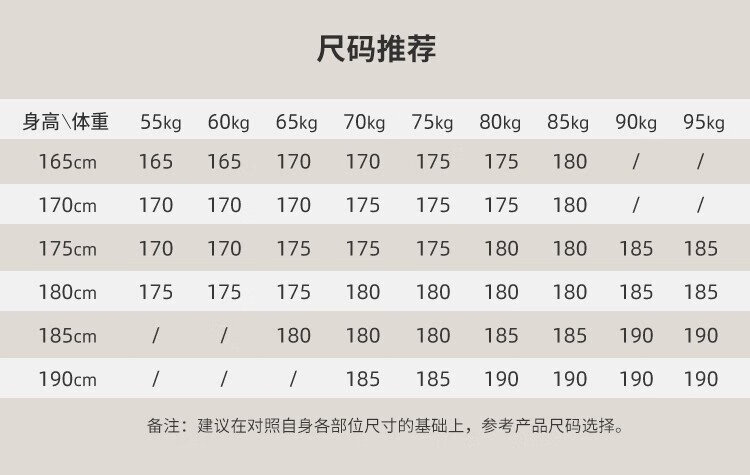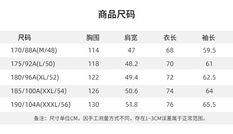 China (cm) 165 / 88-90 170 / 96-98 175 / 108-110 180 / 118-122 185 / 126-130