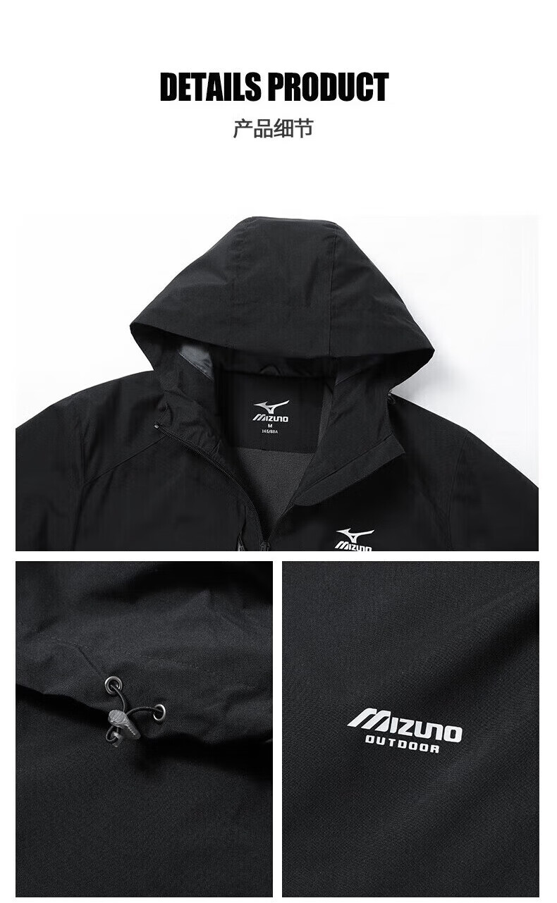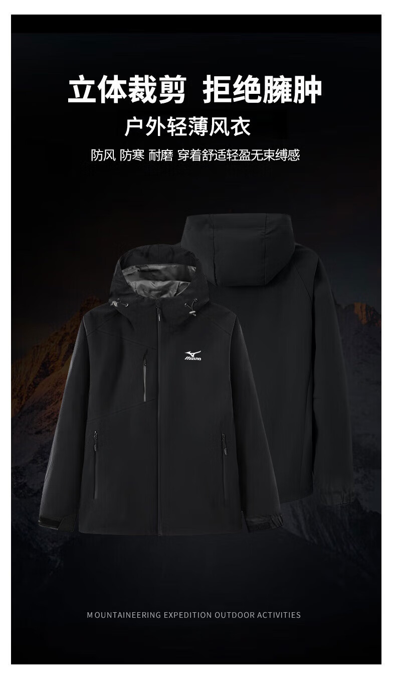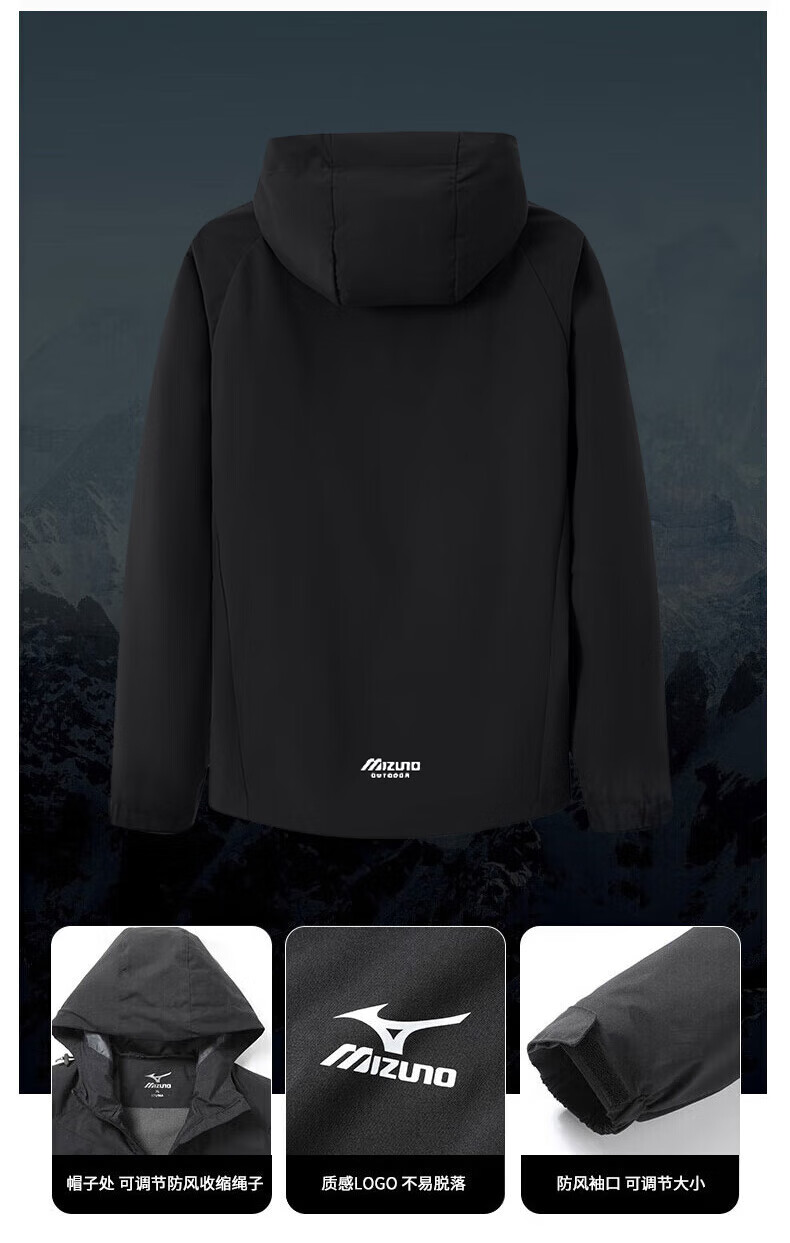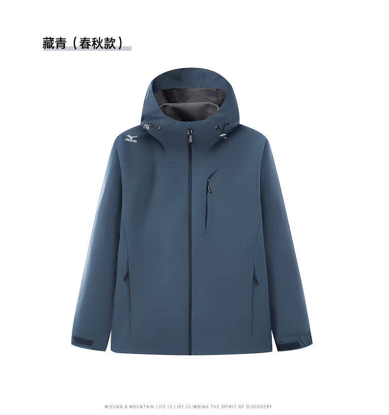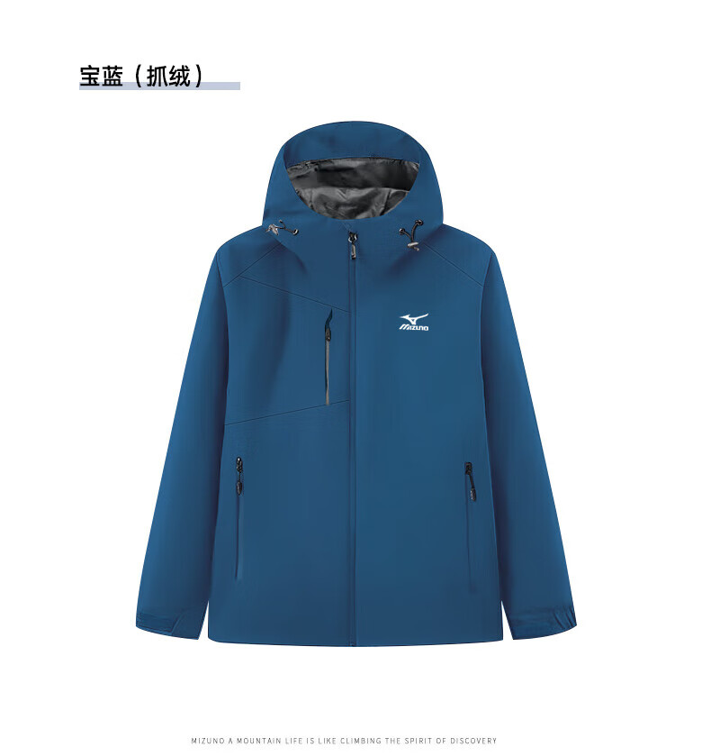 Mizuno Outdoor Windbreaker Men's Windproof Hooded Couple Top Royal Blue Fleece Style L