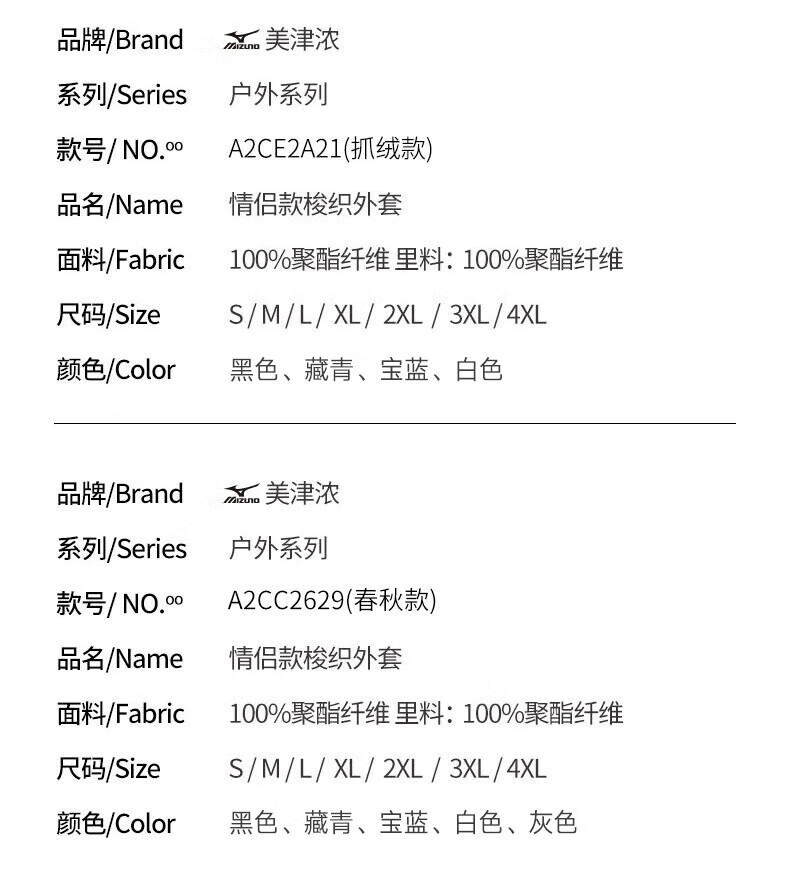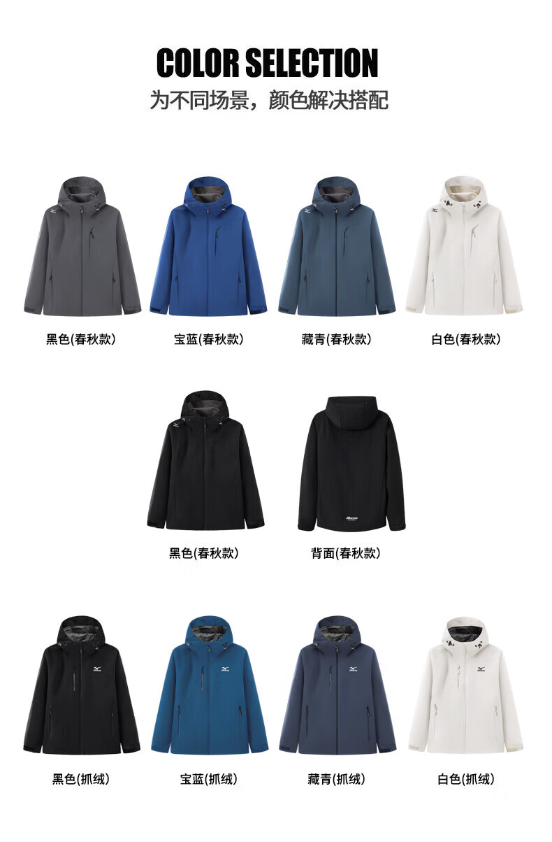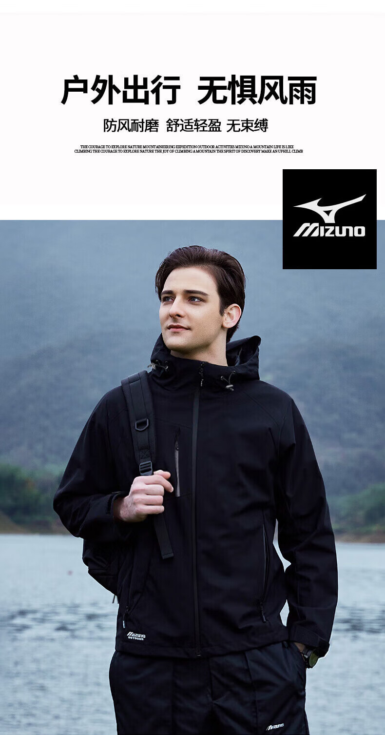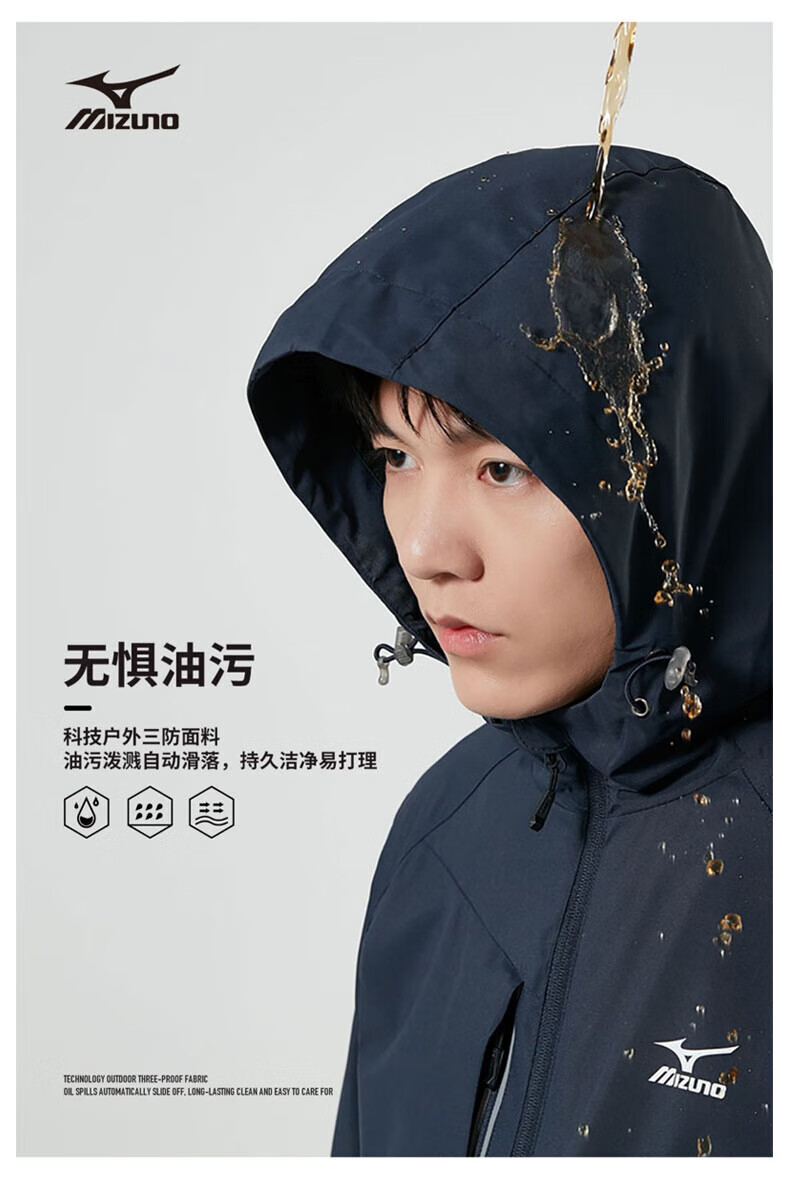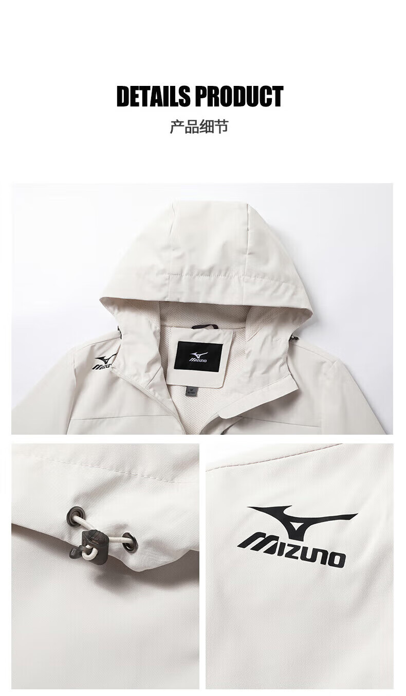 Mizuno Outdoor Windbreaker Men's Windproof Hooded Couple Top Royal Blue Fleece Style L