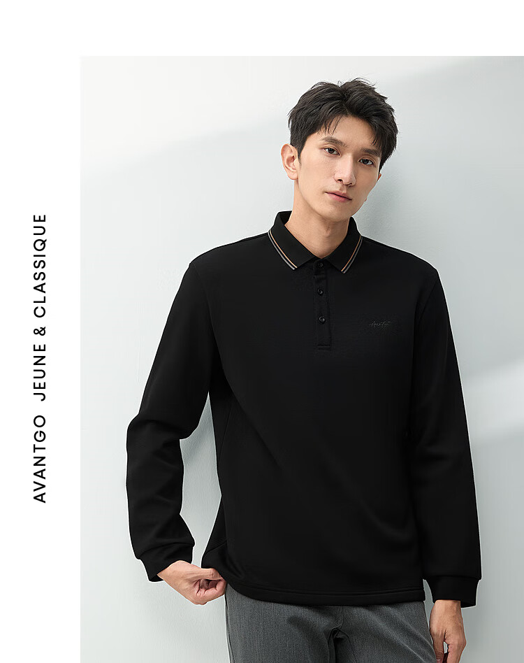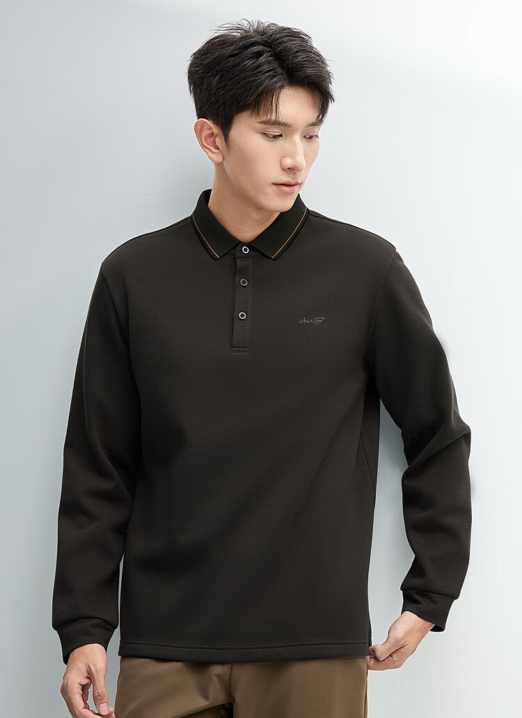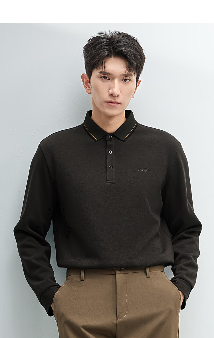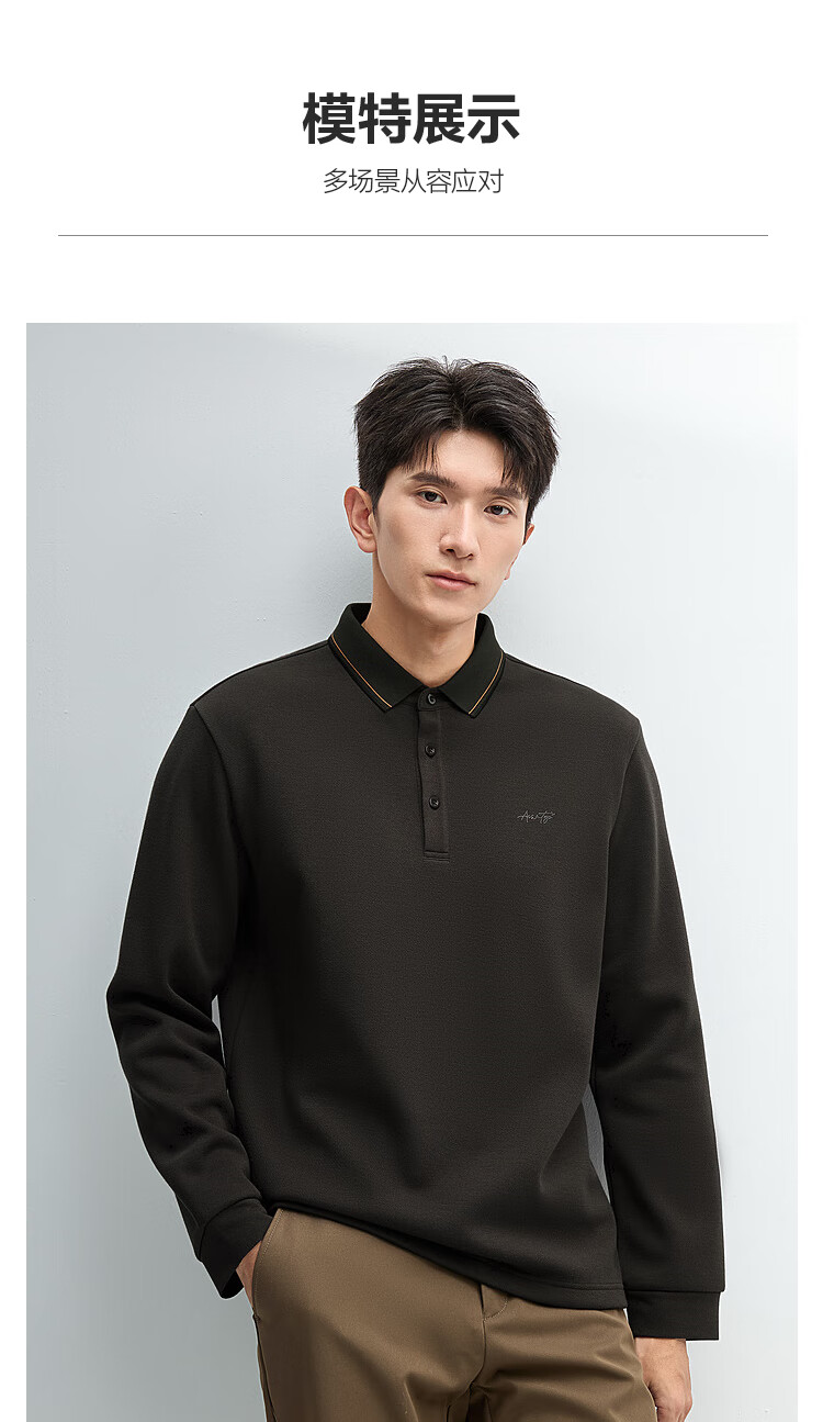 HLA Heilan House velvet POLO men's light business fashion series velvet warm long-sleeved men's winter