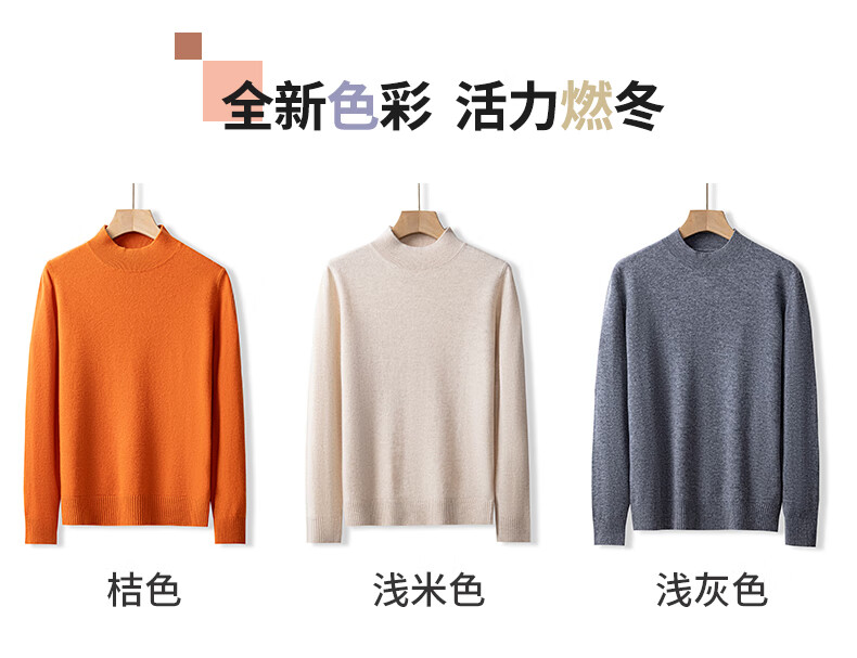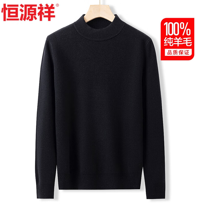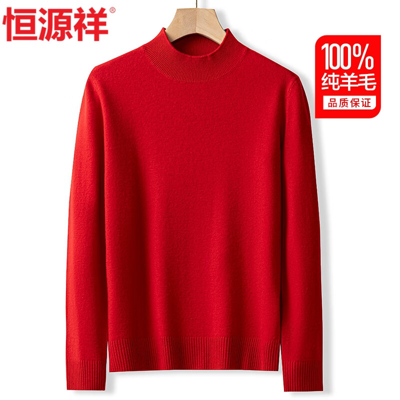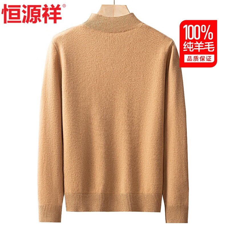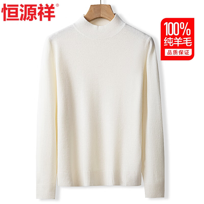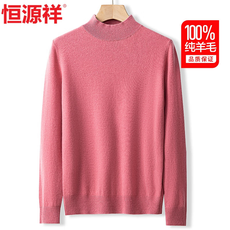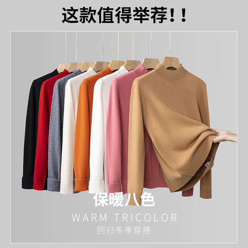 恒源祥100%纯羊毛衫女厚款半高领宽松打底衫冬装时尚针织衫上衣毛衣女
