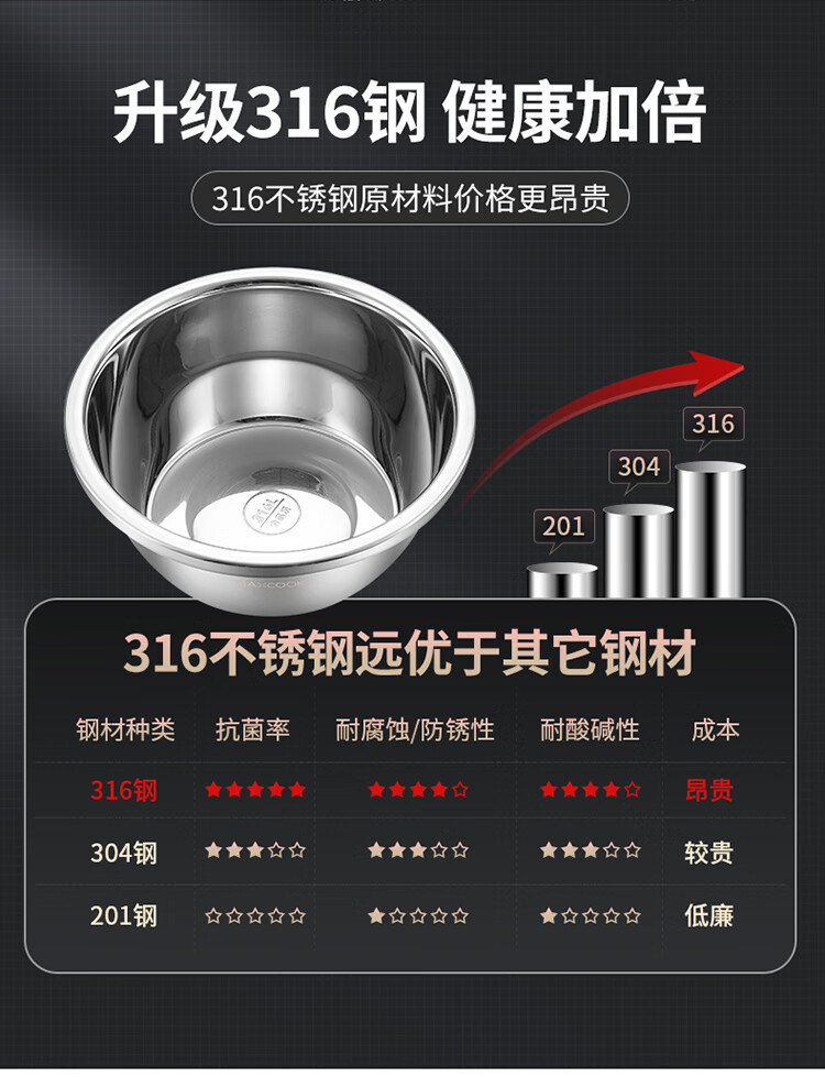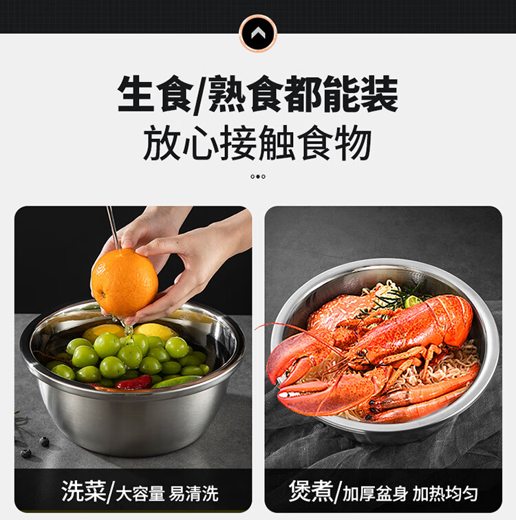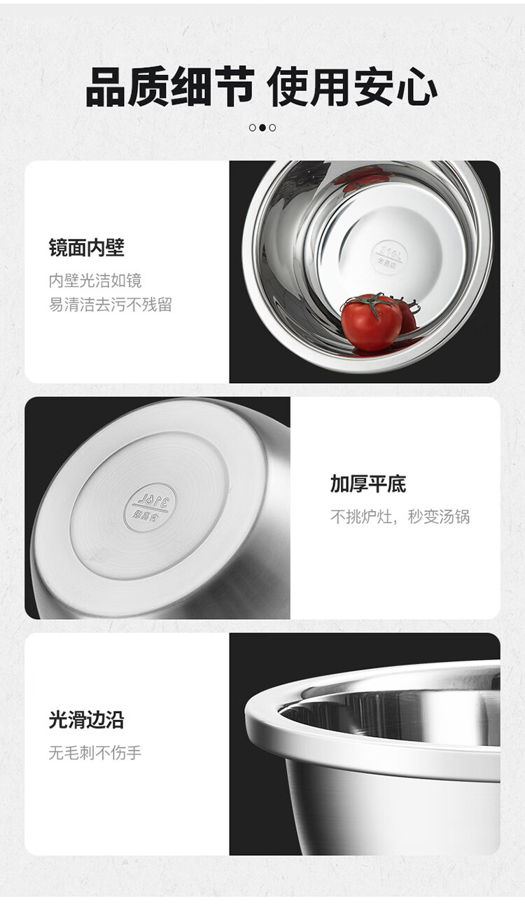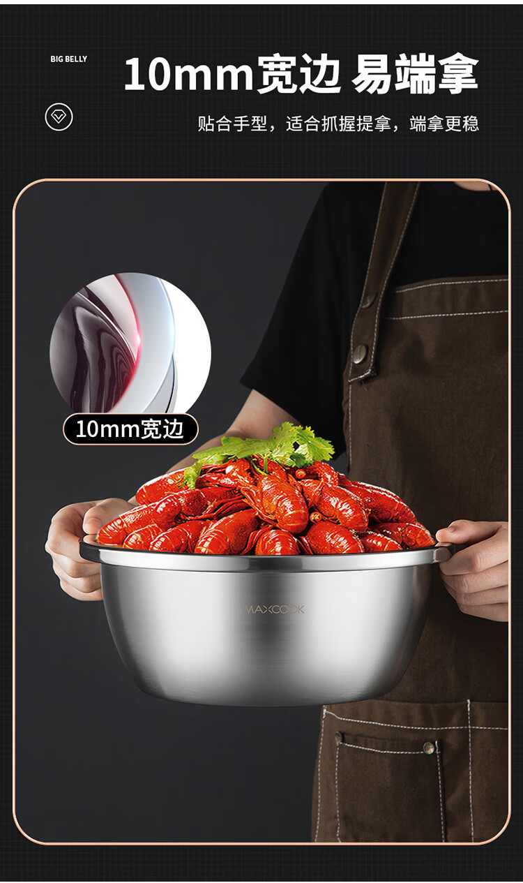 MAXCOOK 316L stainless steel basin, seasoning basin, thickened saucepan 40CM, vegetable basin, salad basin and basin MCWA1143