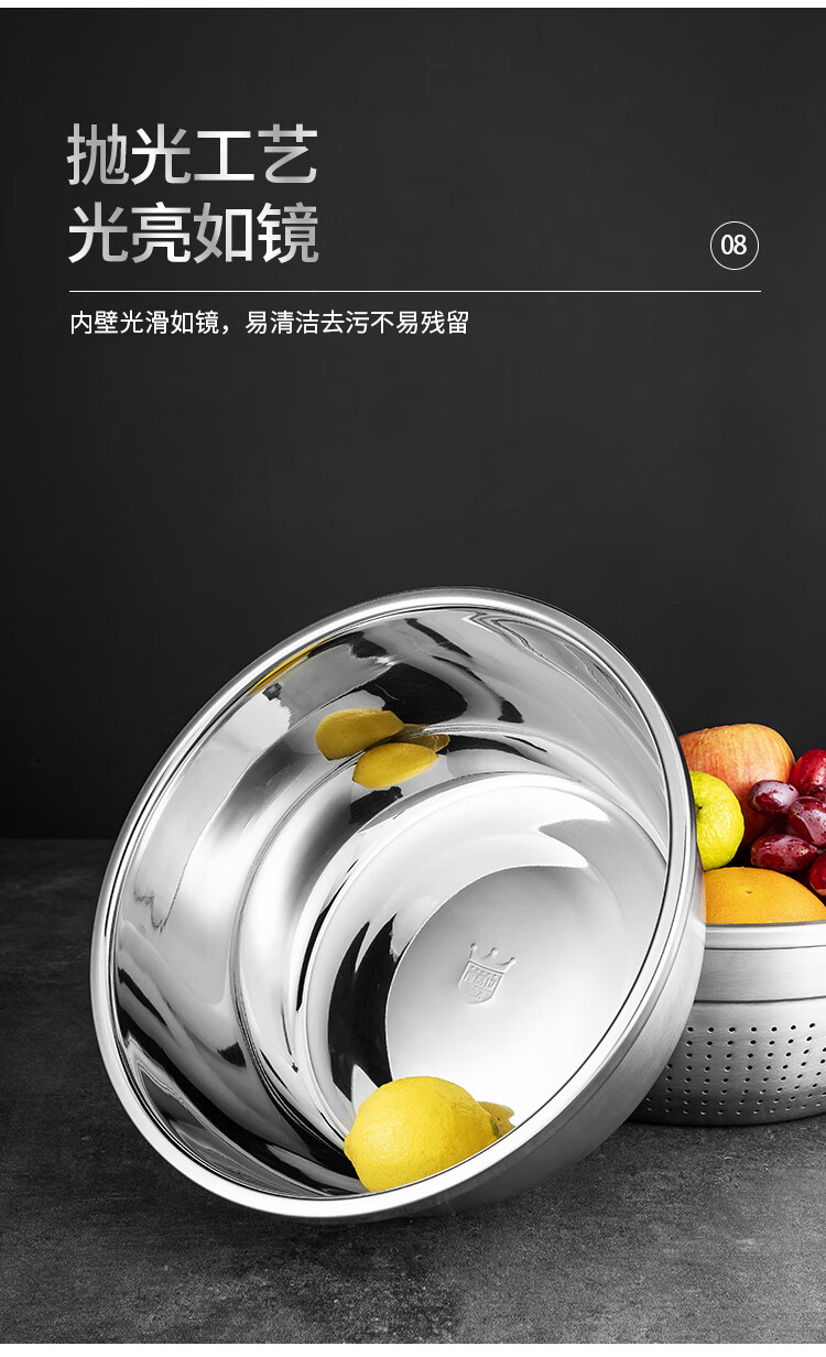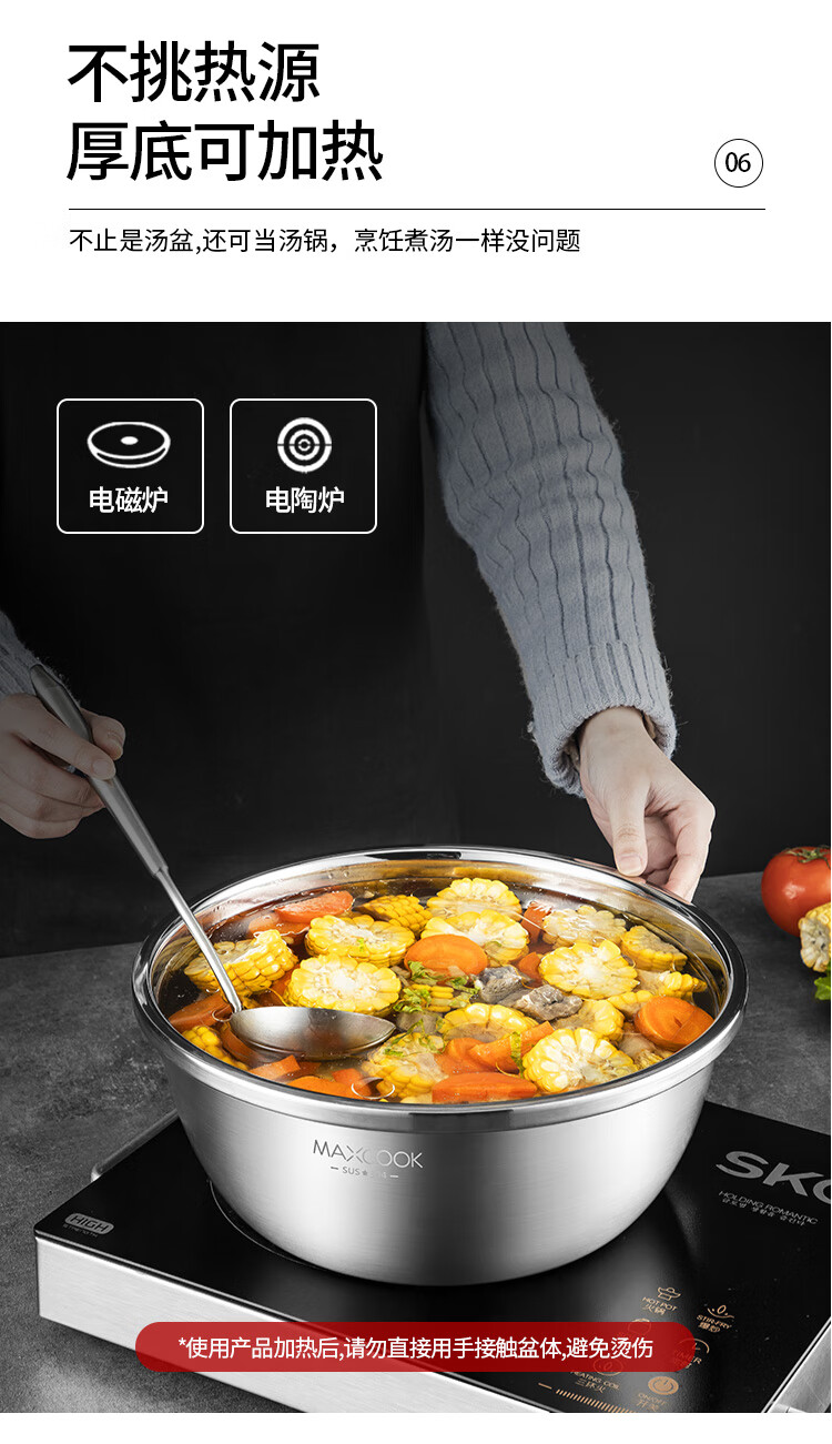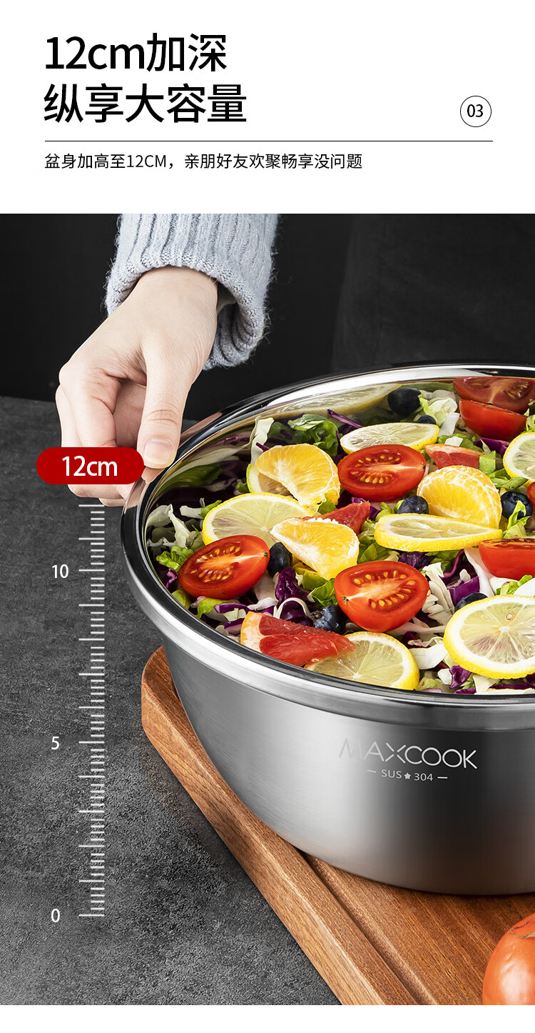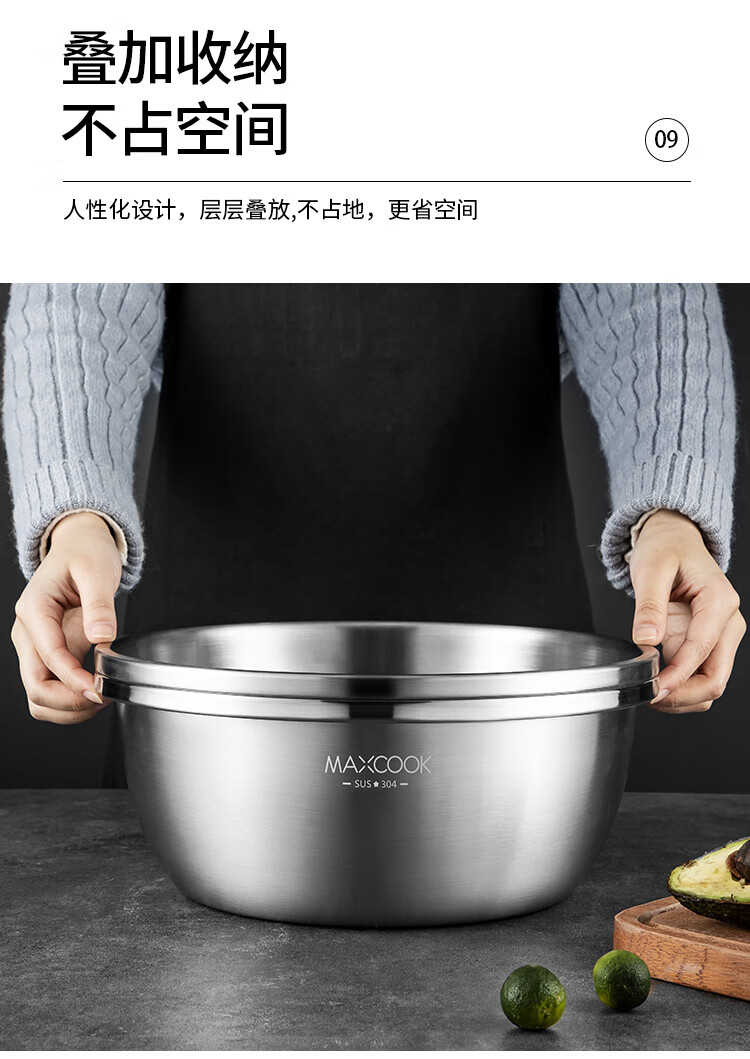 MAXCOOK 304 stainless steel basin sieve 2-piece set 30cm thickened large wash basin rice sieve and flavor bucket set MCWA1167