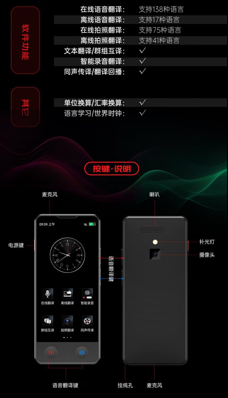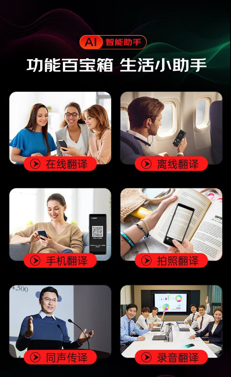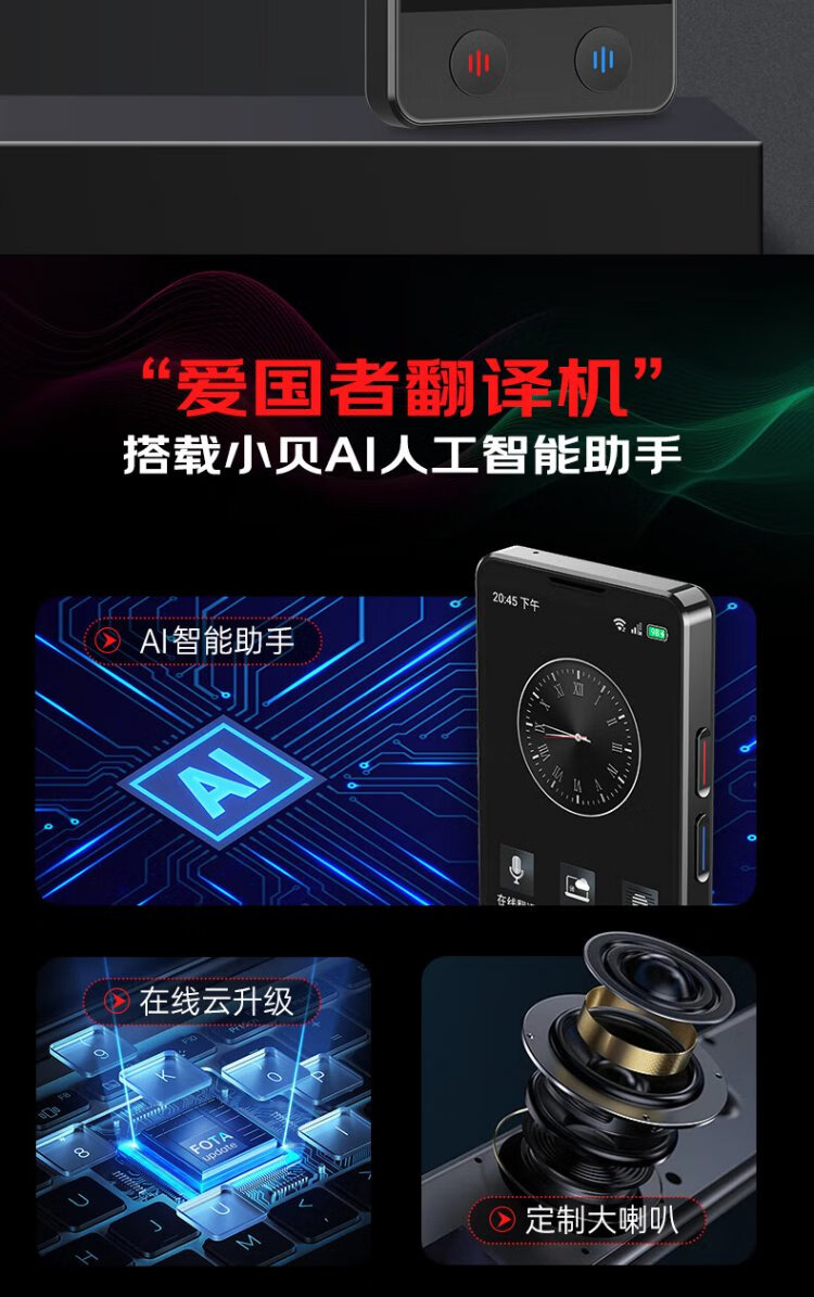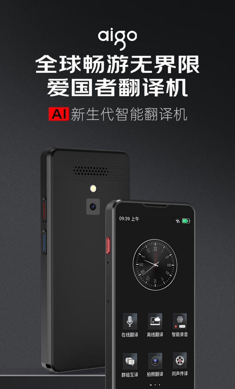 Patriot aigo simultaneous translator multi-lingual offline translation simultaneous interpretation photo translator wifi connected smart translator real-time translation for overseas travel black