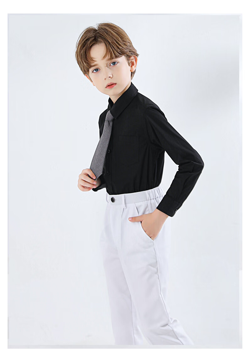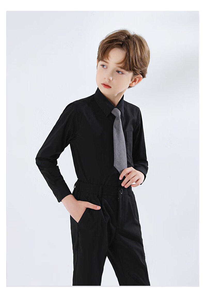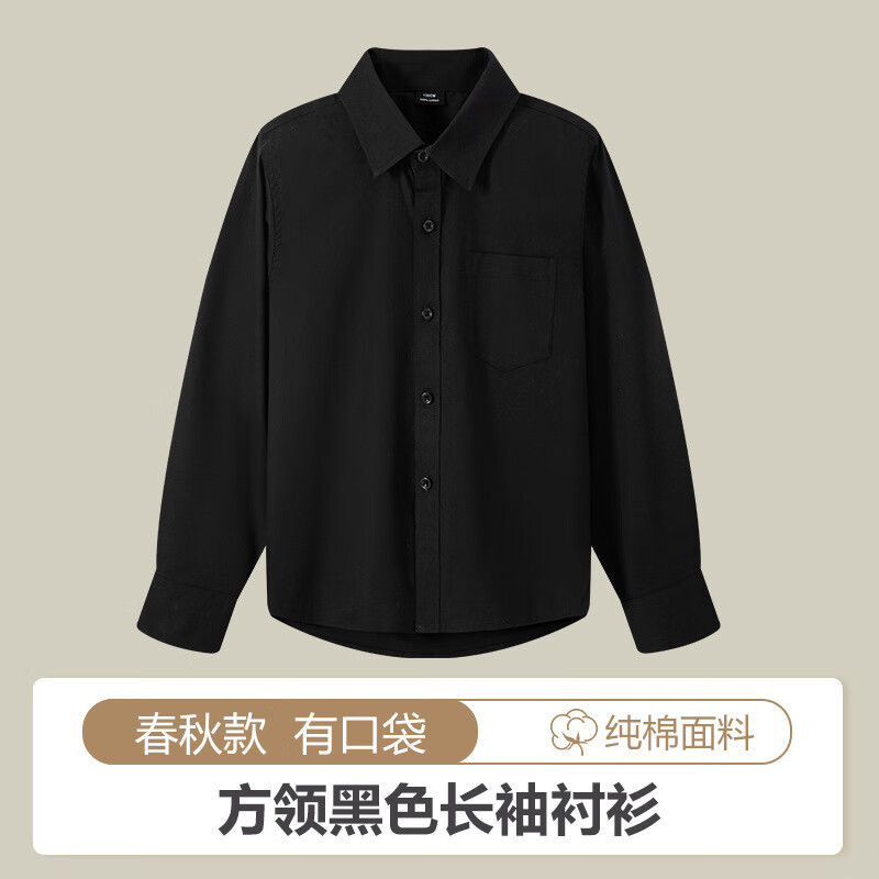 Innovo Children's Shirt Black Long Sleeve Pocket Boys Shirt Black Long Sleeve 150CM