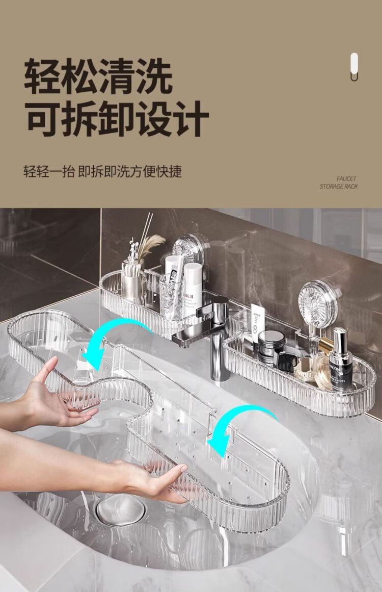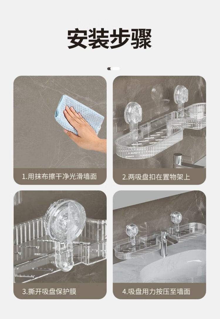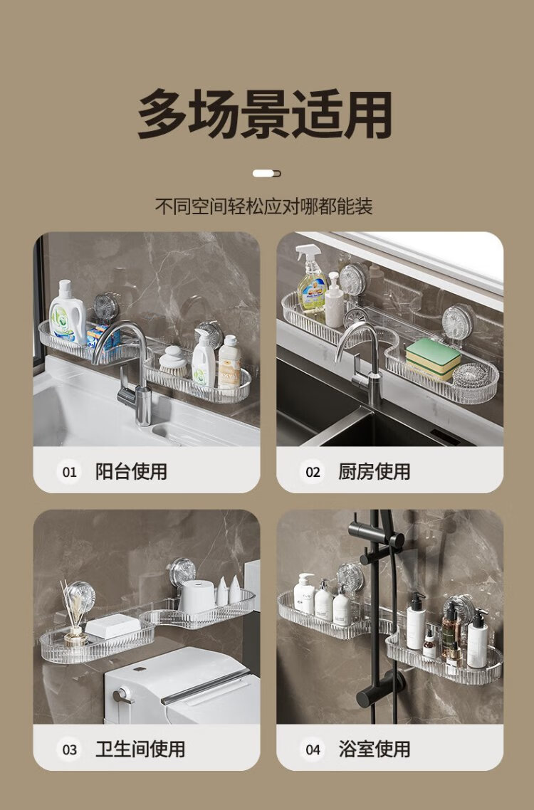 Shuranjia wall-mounted bathroom rack bathroom washbasin storage rack faucet rack through gray