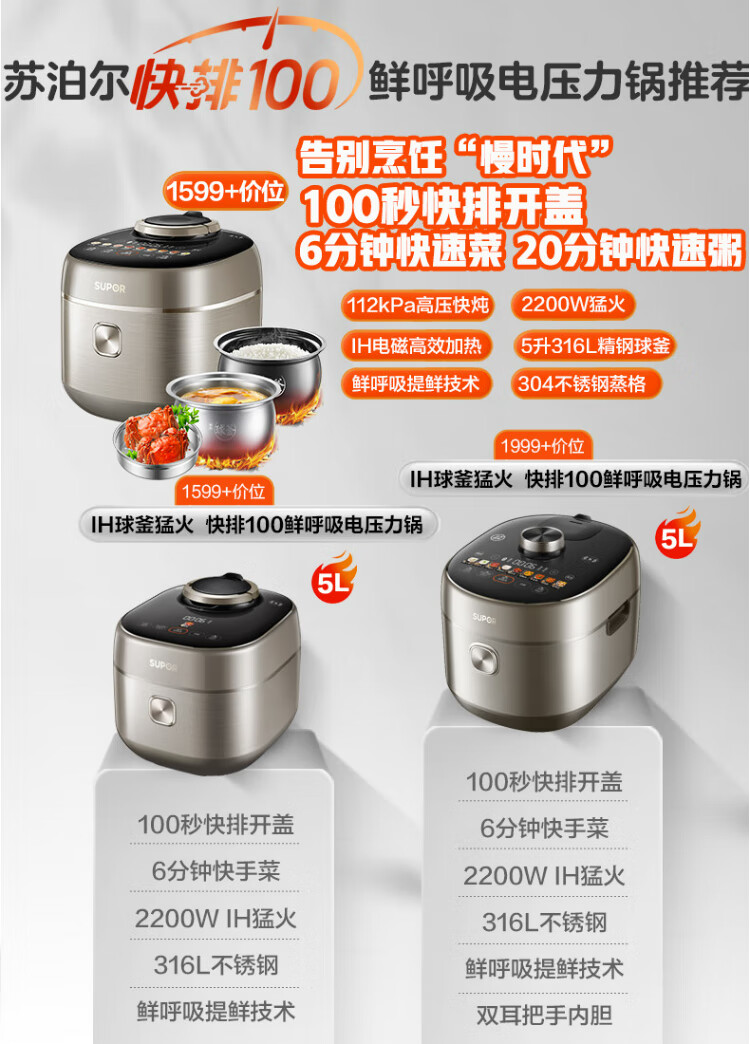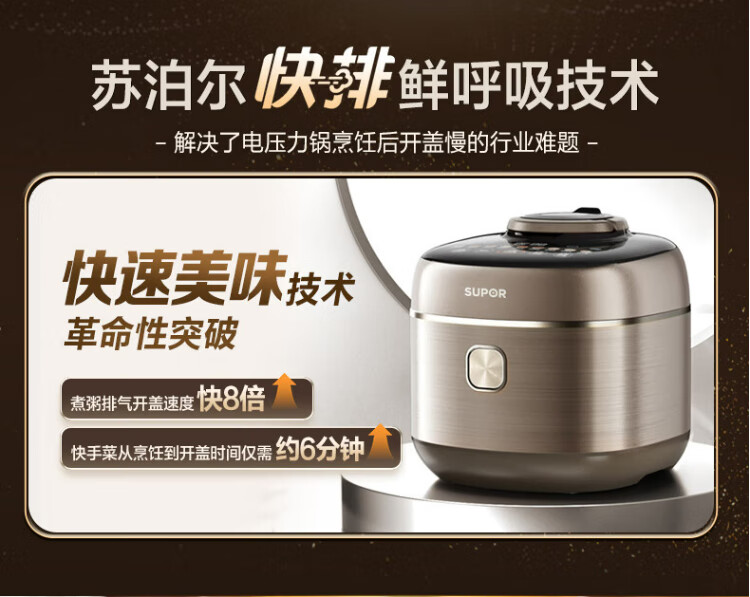 SUPOR National Subsidy IH Quick Discharge Fresh Breathing Electric Pressure Cooker 5L 112kPa 2200W Maternal and Infant 316L Spherical Kettle Pressure Cooker SY-50FH5018Q 4-6 people