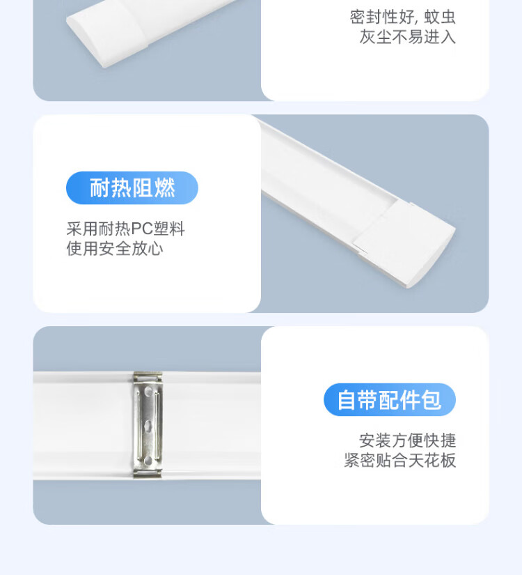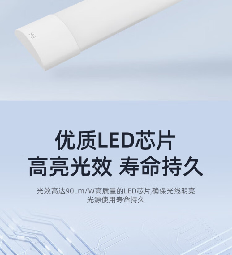 FSL Foshan Lighting High Color Rendering LED Three-Proof Integrated Light Tube 0.6 Meter 18W Super Bright Energy-Saving Strip Light Display Cabinet Office Wide Body Light White Light 6500K