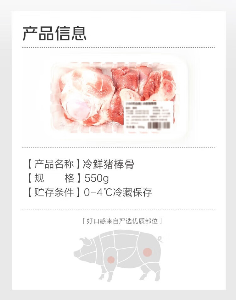 180 Days White Pork Chilled Pork Stick Bones 550g