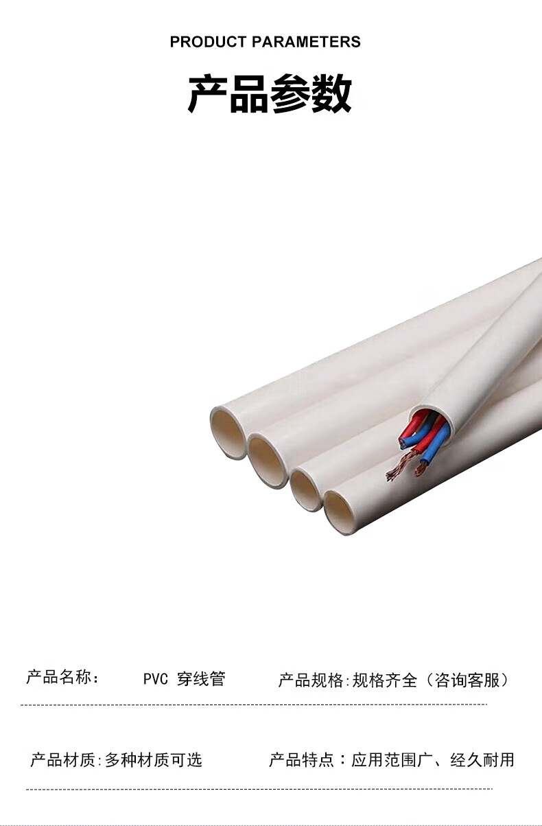 Steel pre-worked product PVC threading B pipe, wiring wire casing, insulated, flame-retardant, thickened, corrosion-resistant electrical pipe 3.7 meters/piece, price DN20 per piece