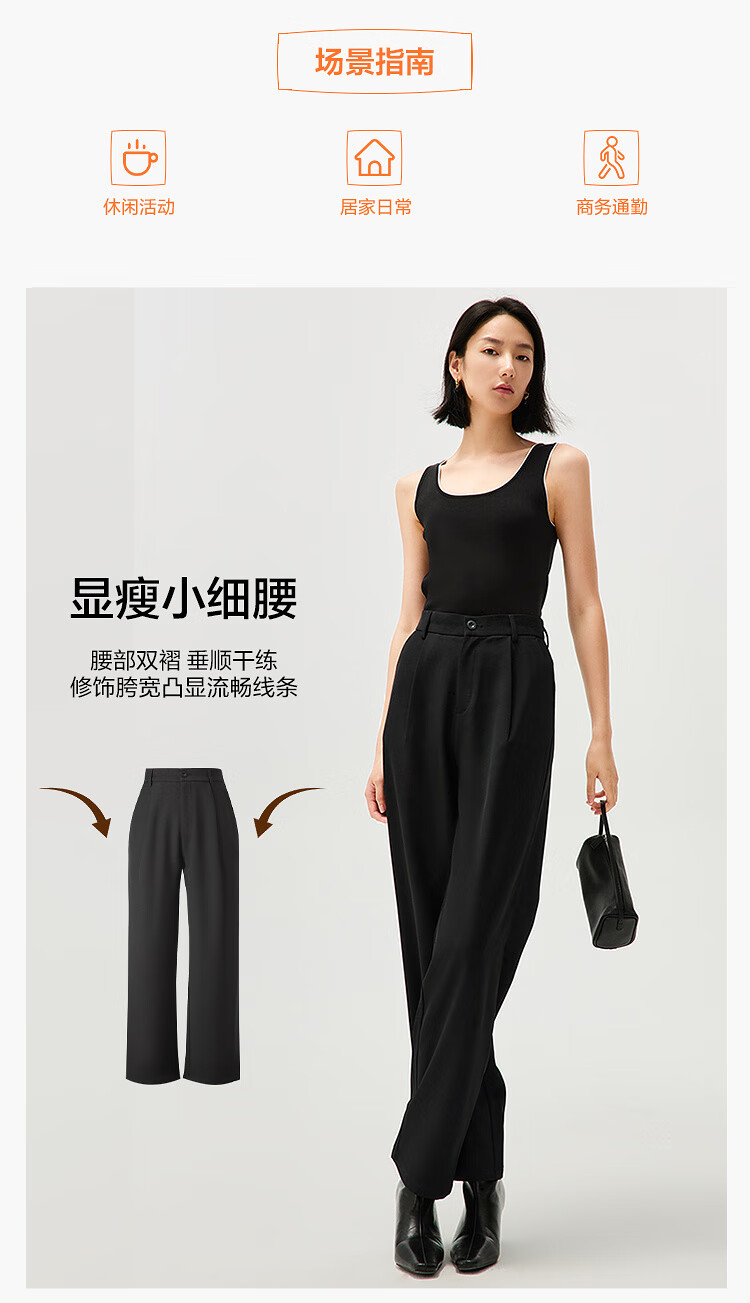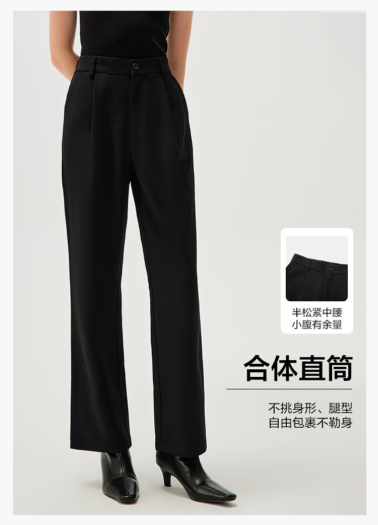 HLA Hailan House trousers women's business elegant waist double pleated straight trousers women's spring and autumn