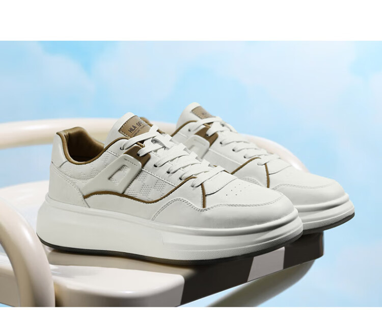 Hai Lan House HLA men's shoes breathable casual sneakers heightening white shoes men HAABXM2DFH181 white apricot 42