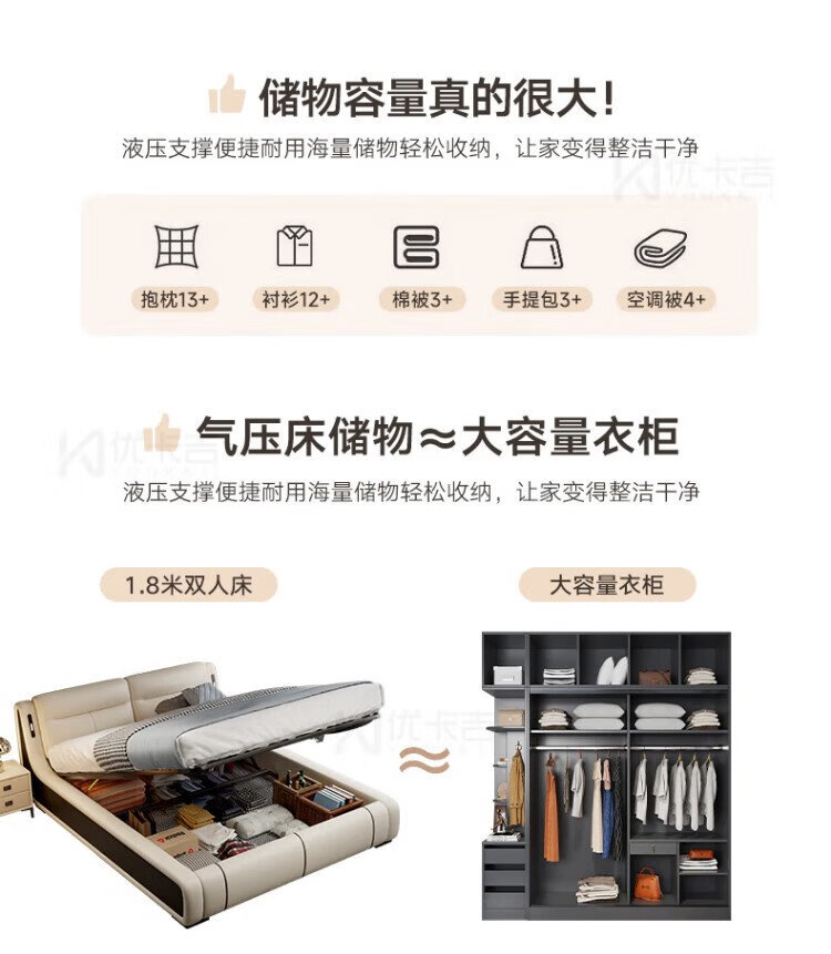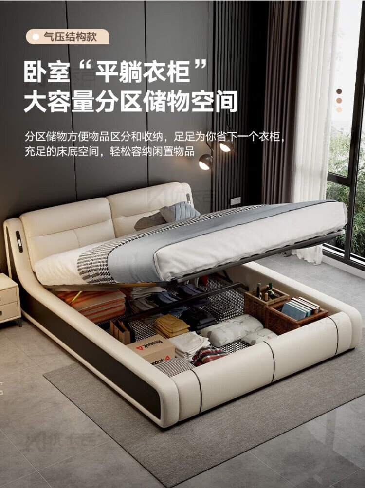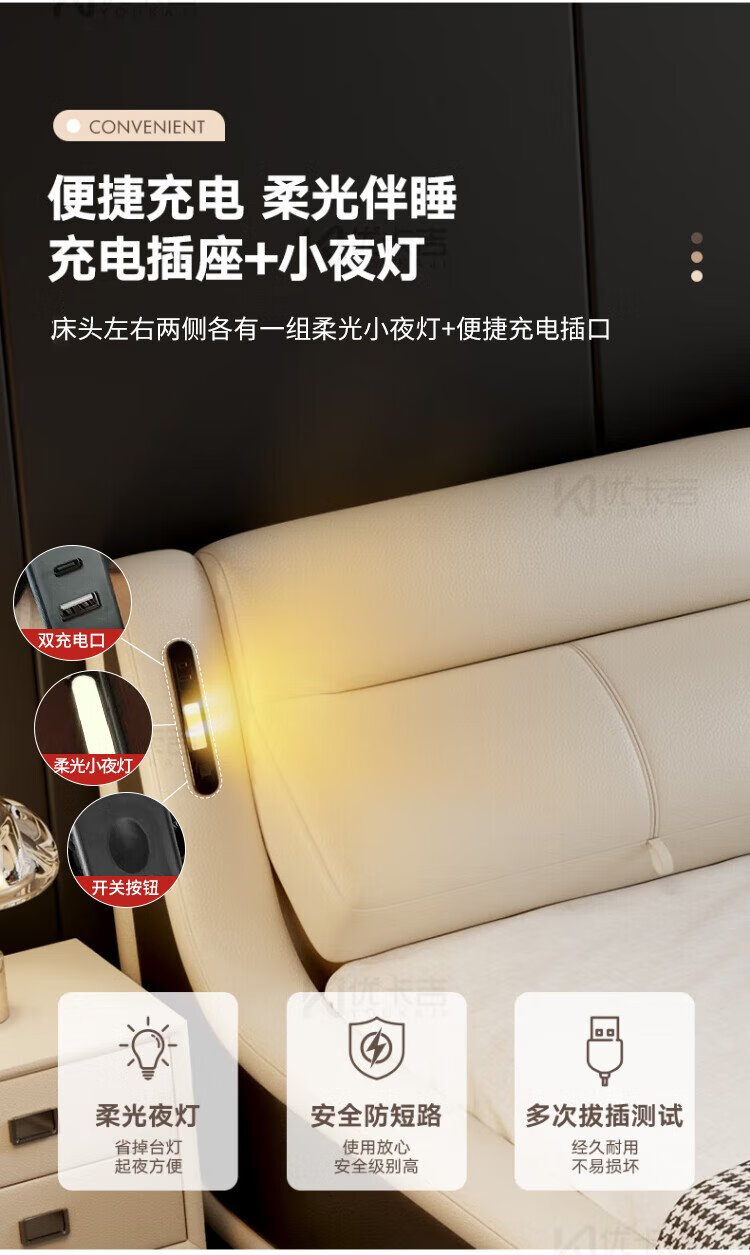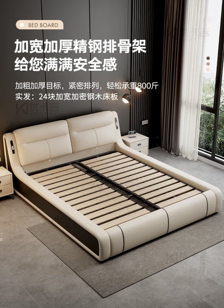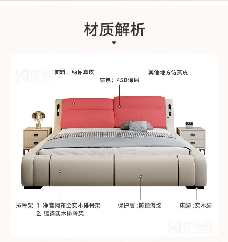 Youkaji modern multifunctional leather bed double bed 1.5m 2m master bedroom king bed JNY-08 1.8m frame bed