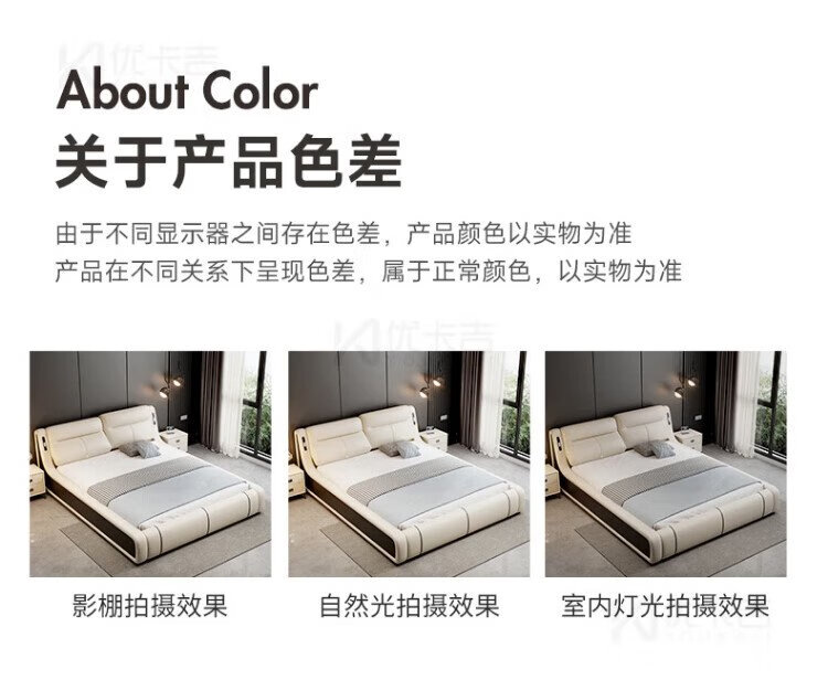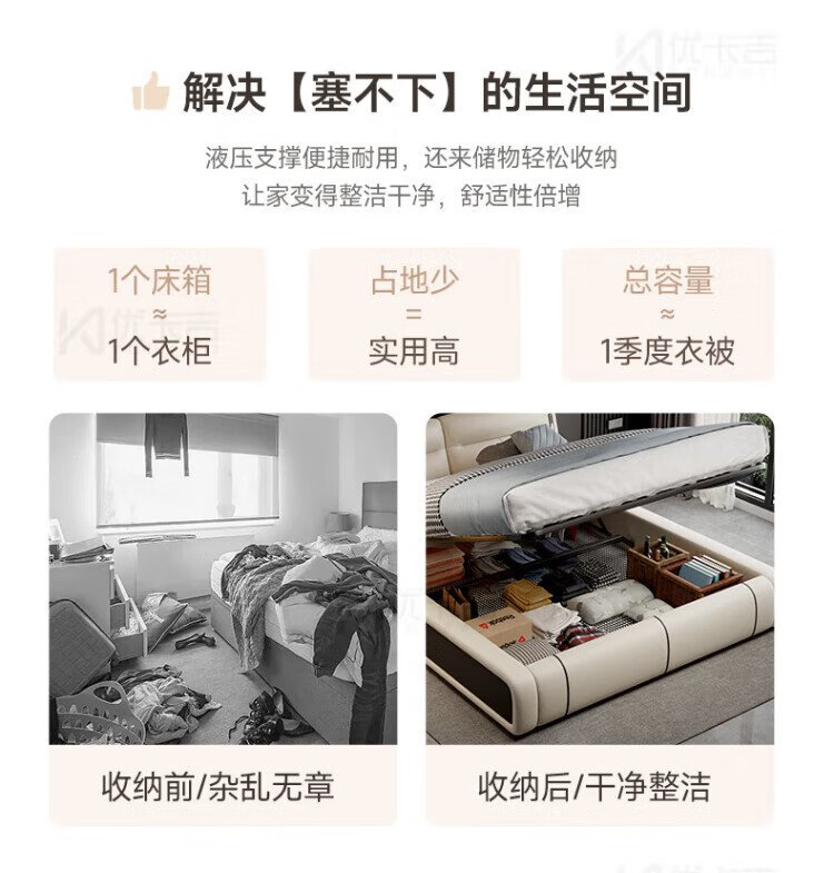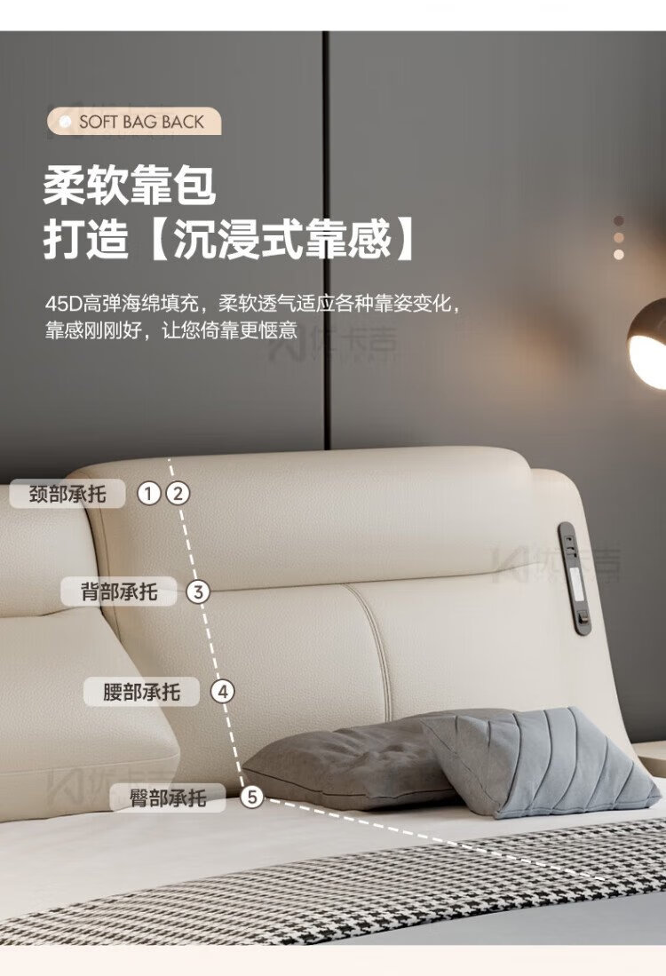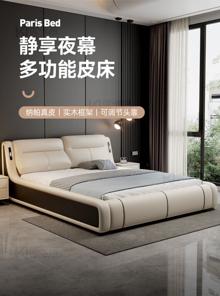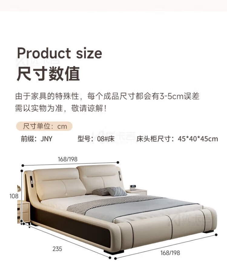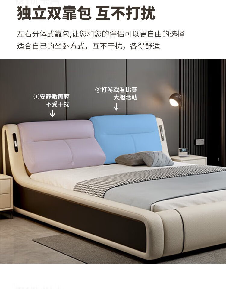 Youkaji modern multifunctional leather bed double bed 1.5m 2m master bedroom king bed JNY-08 1.8m frame bed