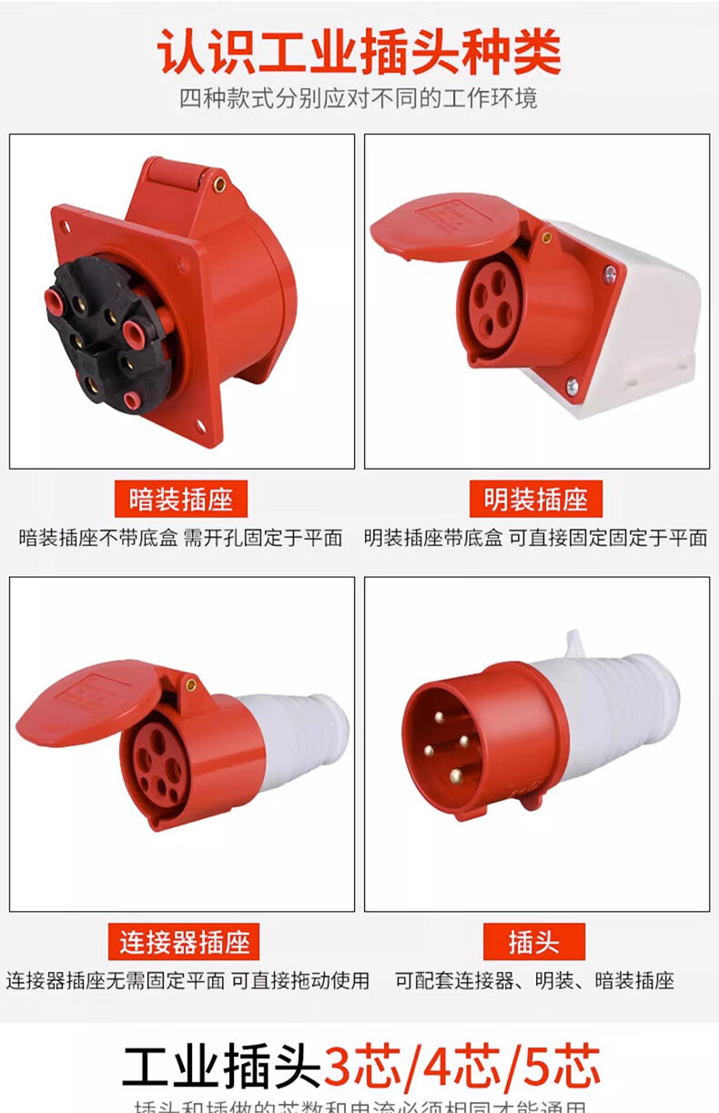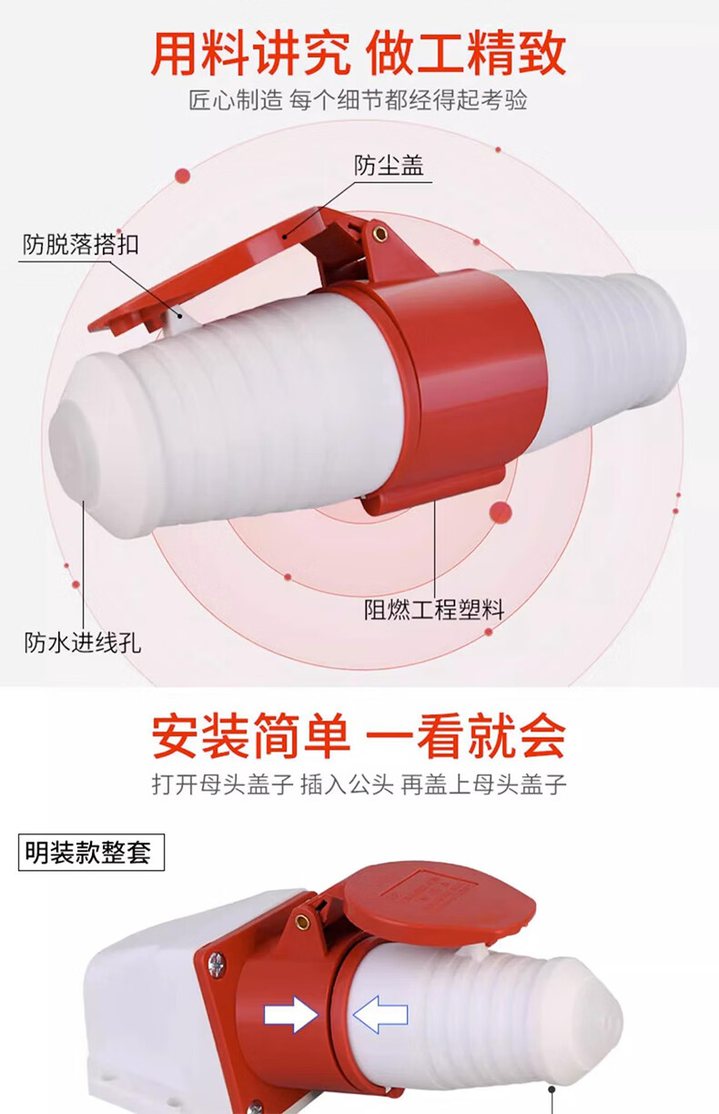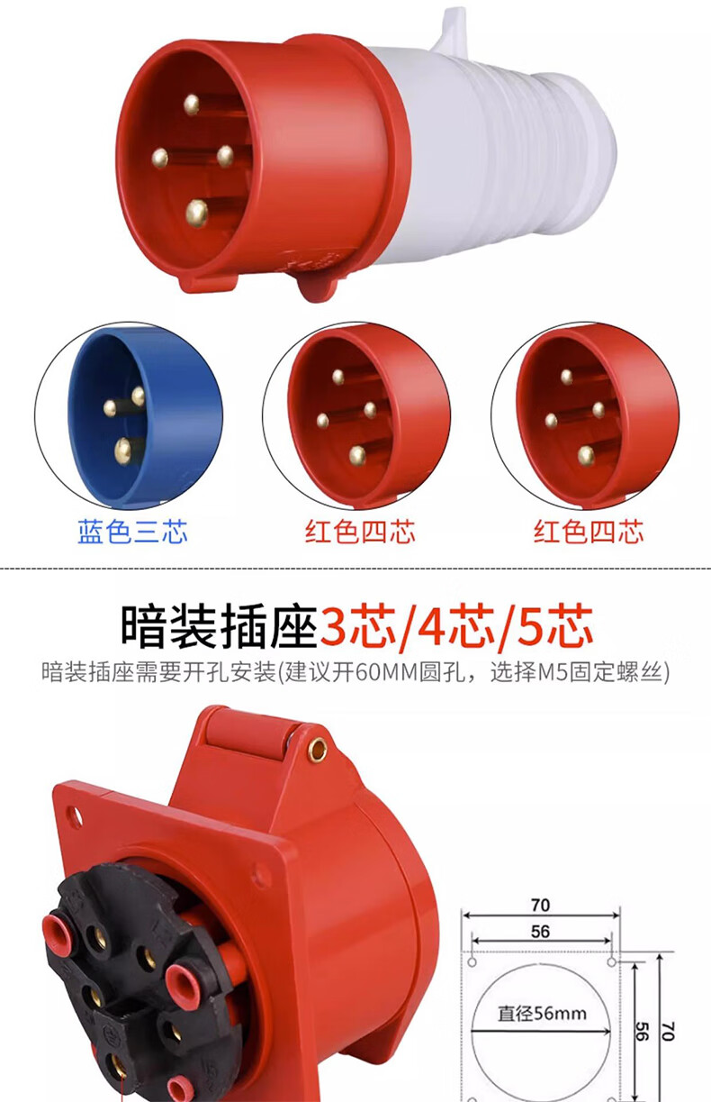 Tianshili outdoor waterproof aviation plug socket quick plug industrial dustproof aviation plug set 3-core 16A plug + connector (3 pieces)