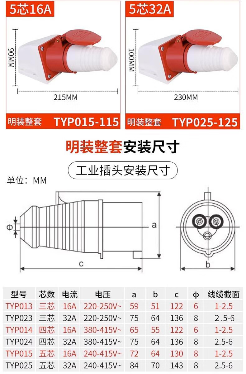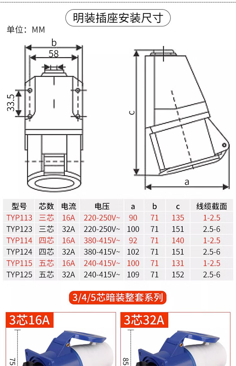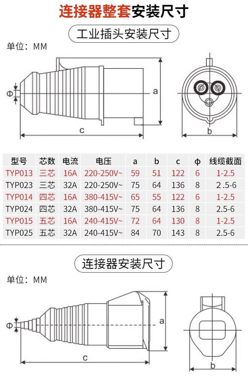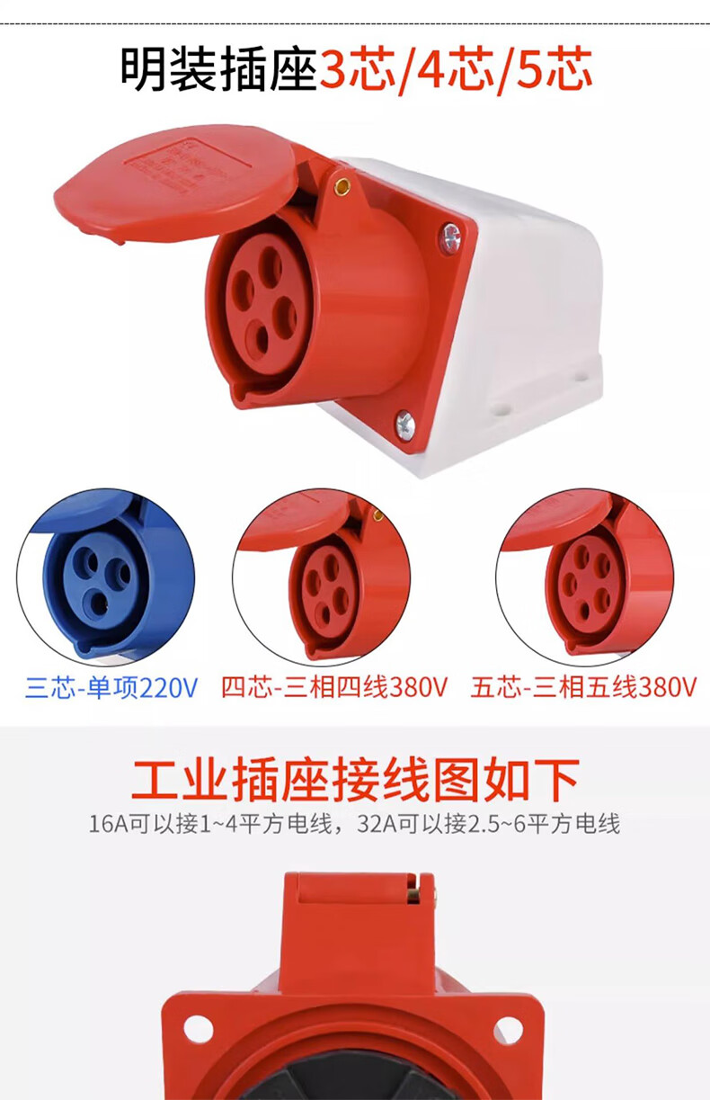 Tianshili outdoor waterproof aviation plug socket quick plug industrial dustproof aviation plug set 3-core 16A plug + connector (3 pieces)