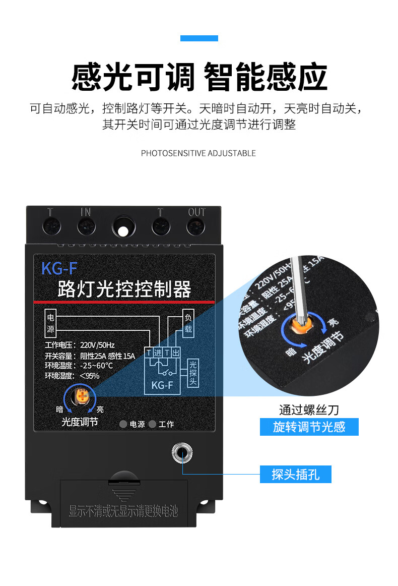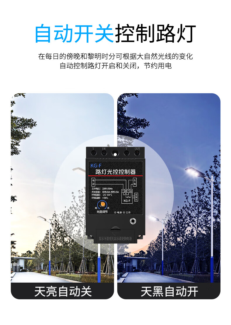 Duo Gao ineless light control switch turns off during the day and turns on at night light induction switch high-power street light control controller KG-F photosensitive adjustable