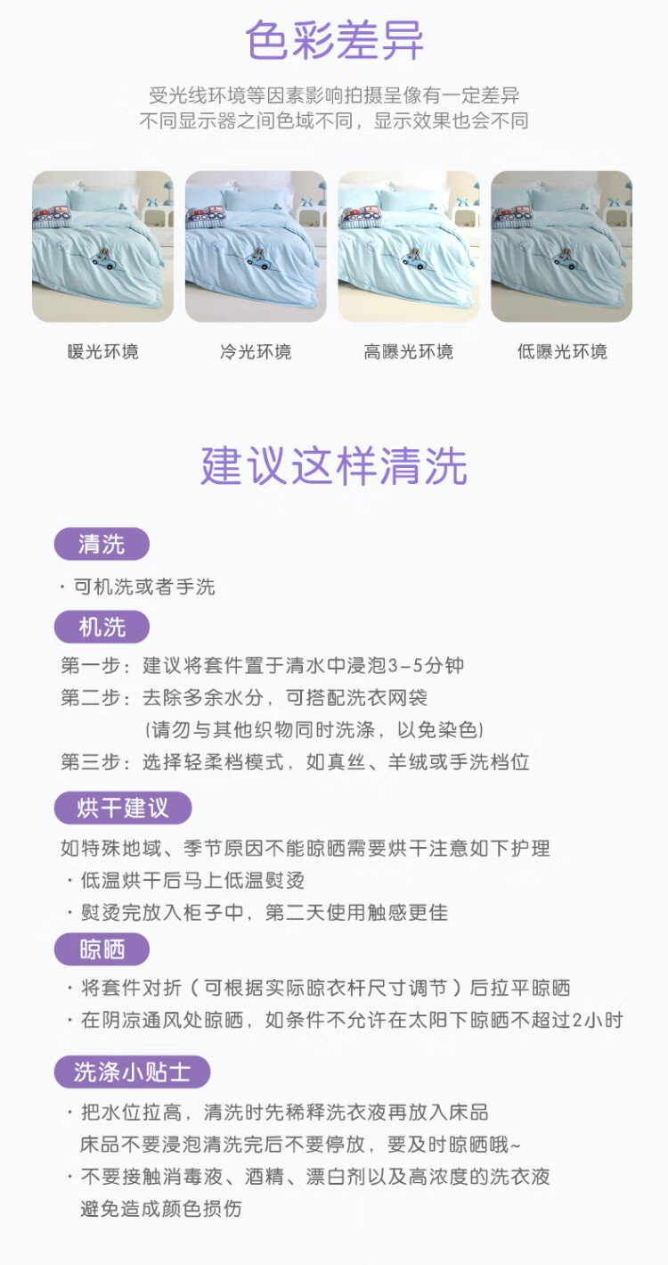 Luolai Children's Baby Class A 60 Count Cotton Bed Sheet Three-piece Set Student Dormitory Children's Single Cotton Bedding 150*215cm
