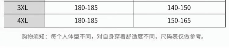 China (cm) 165 / 88-90 170 / 96-98 175 / 108-110 180 / 118-122 185 / 126-130