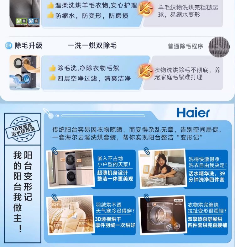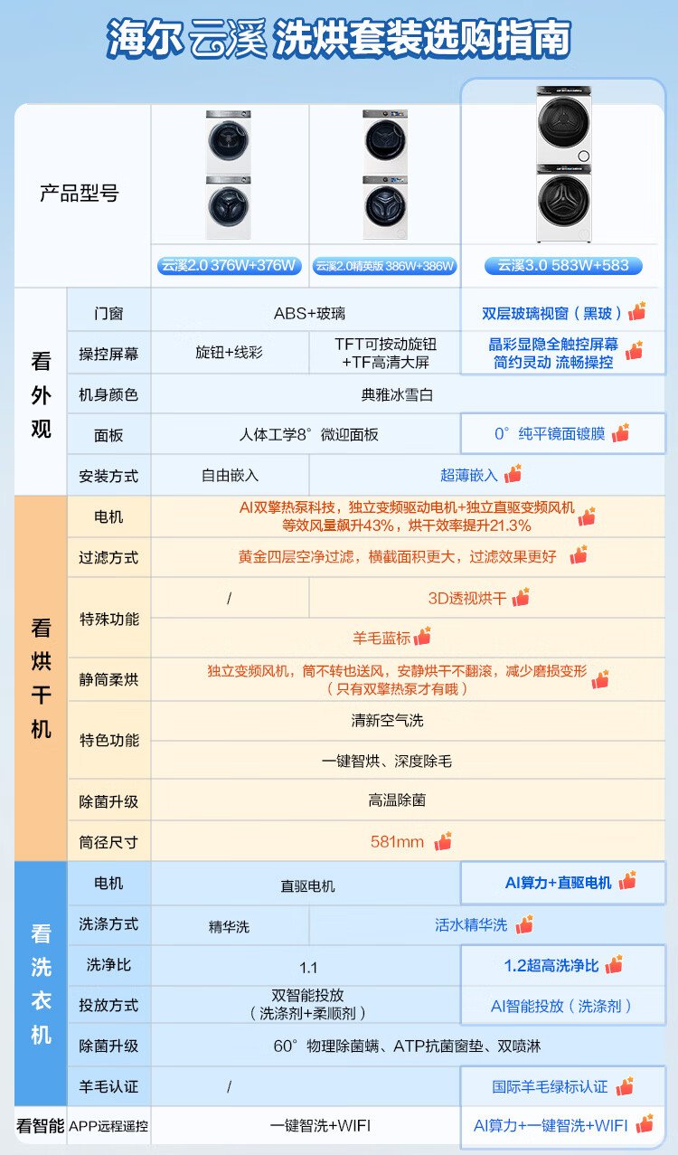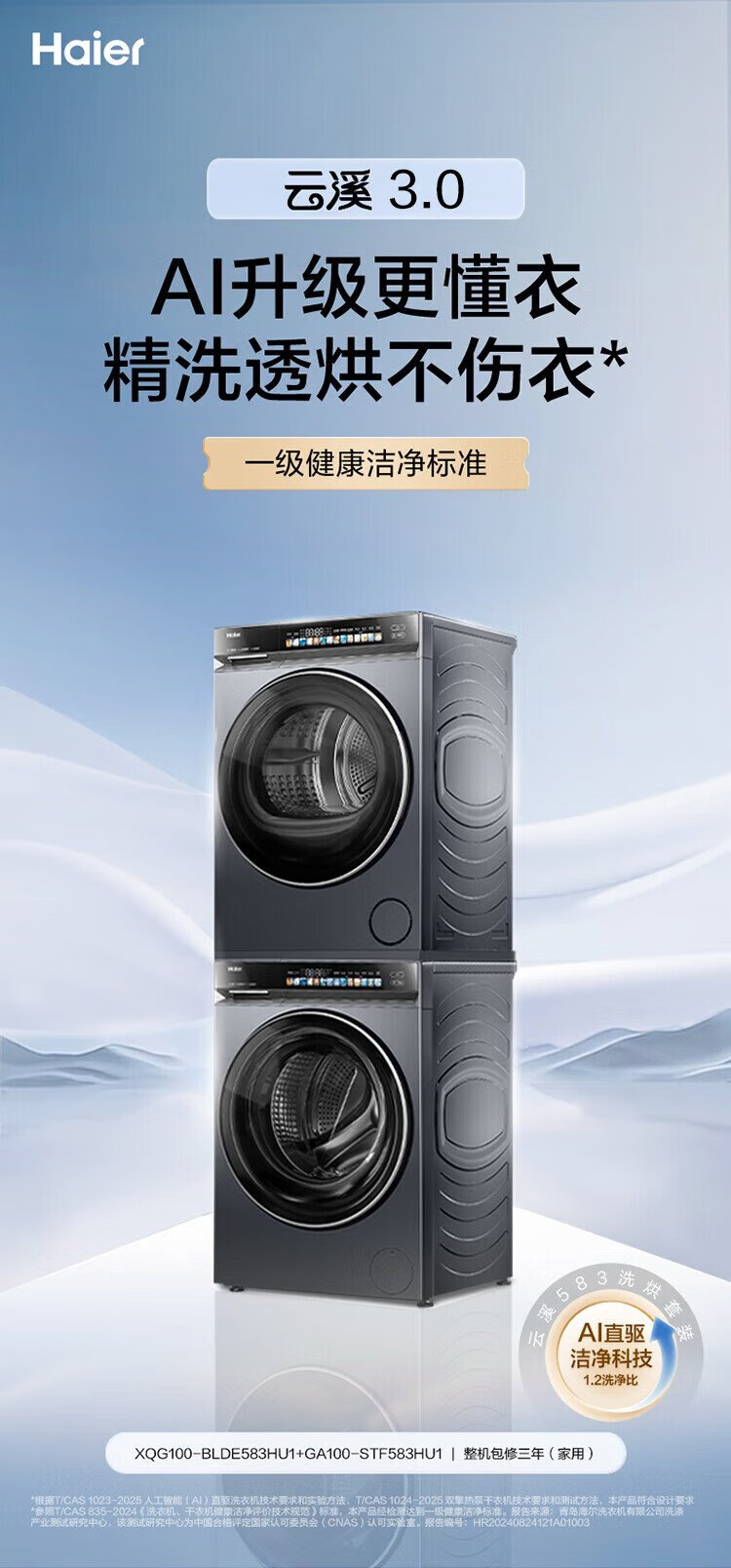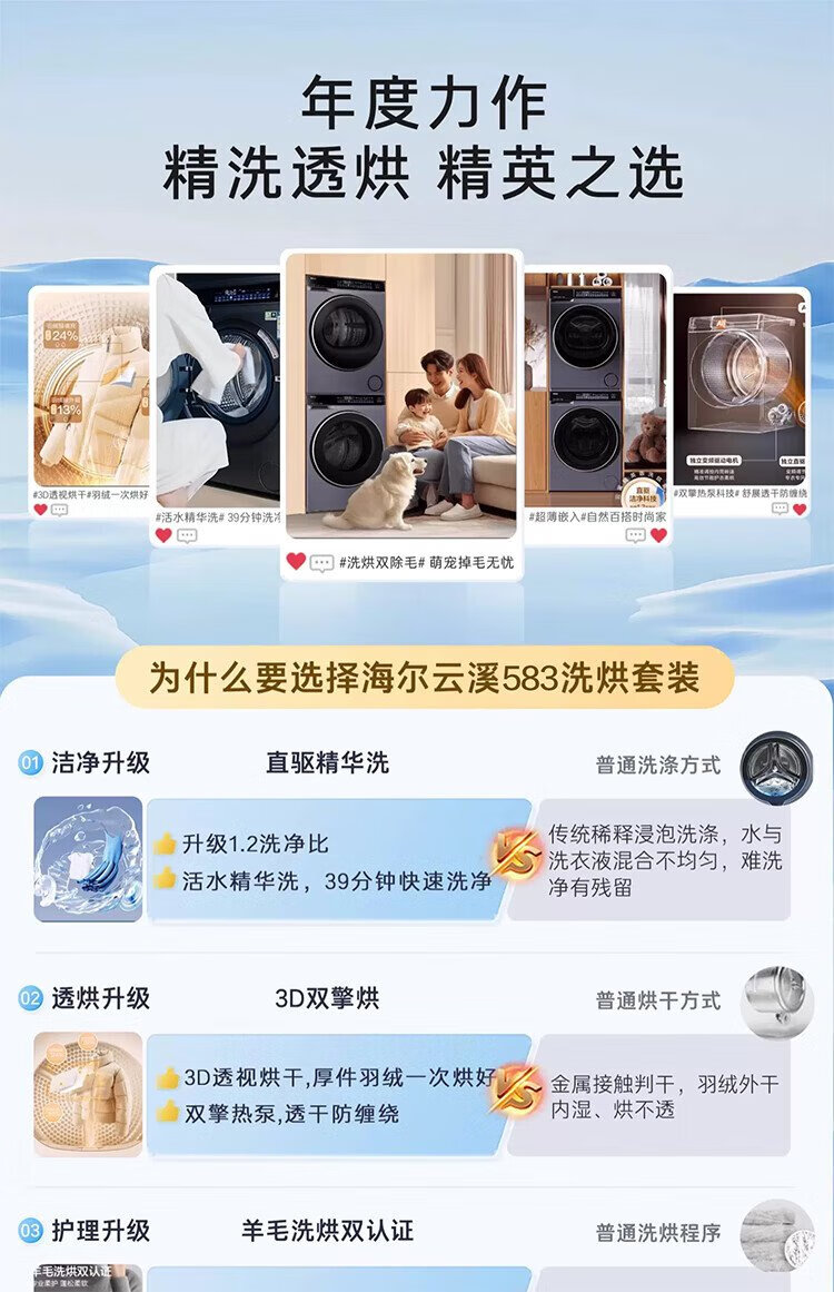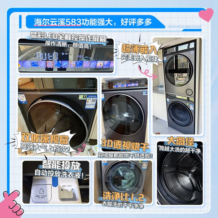 Haier Yunxi 3.0 Series 583 Washing and Drying Set 10KG Direct Drive Drum Fully Automatic Washing Machine + Heat Pump Dryer OCC 583+583 Home Appliances National Subsidy