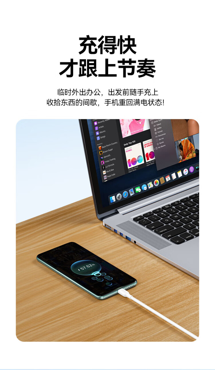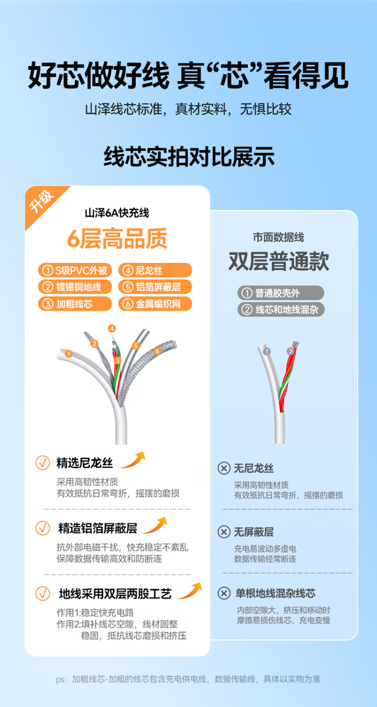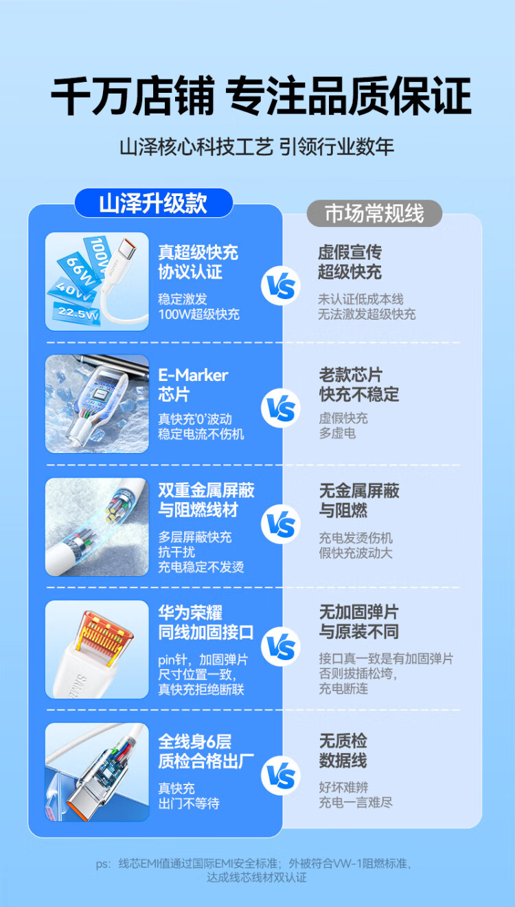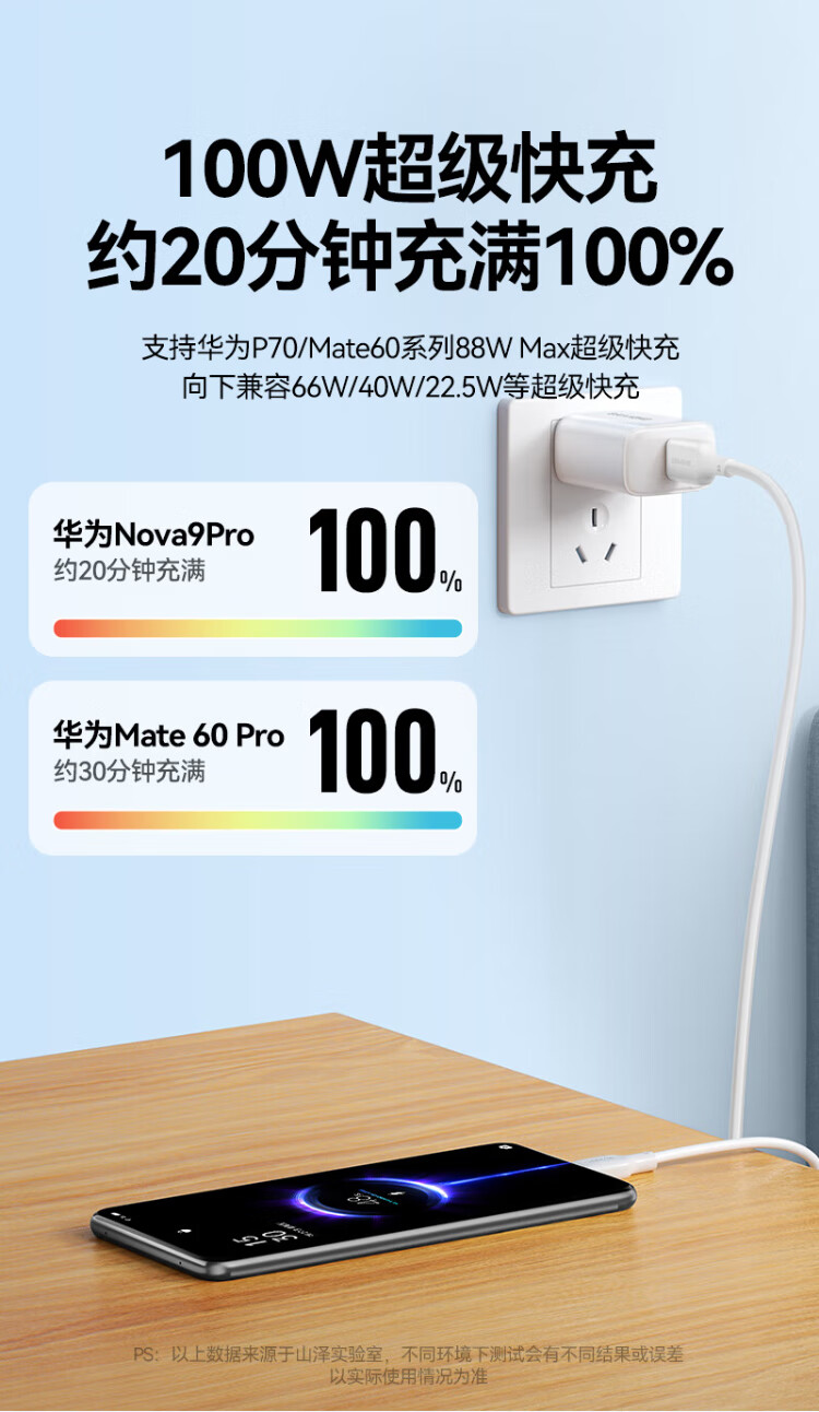Shanze Type-C data cable 100W super fast charging cable 6A suitable for Huawei Pura70/Mate60/50 Honor 66W Xiaomi vivo Android mobile phone car charging cable 1 meter