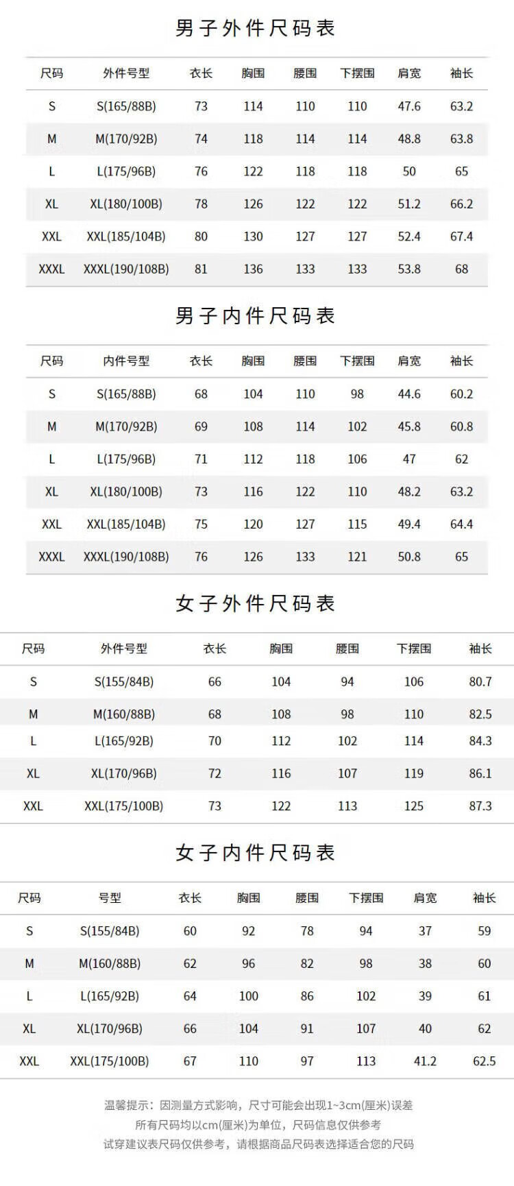 China (cm) 165 / 88-90 170 / 96-98 175 / 108-110 180 / 118-122 185 / 126-130